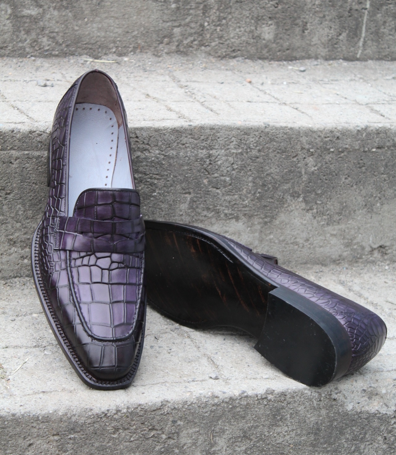 Crafted Leather Classic Purple Crocodile/Alligator Moccasin Loafers Dress Shoes
