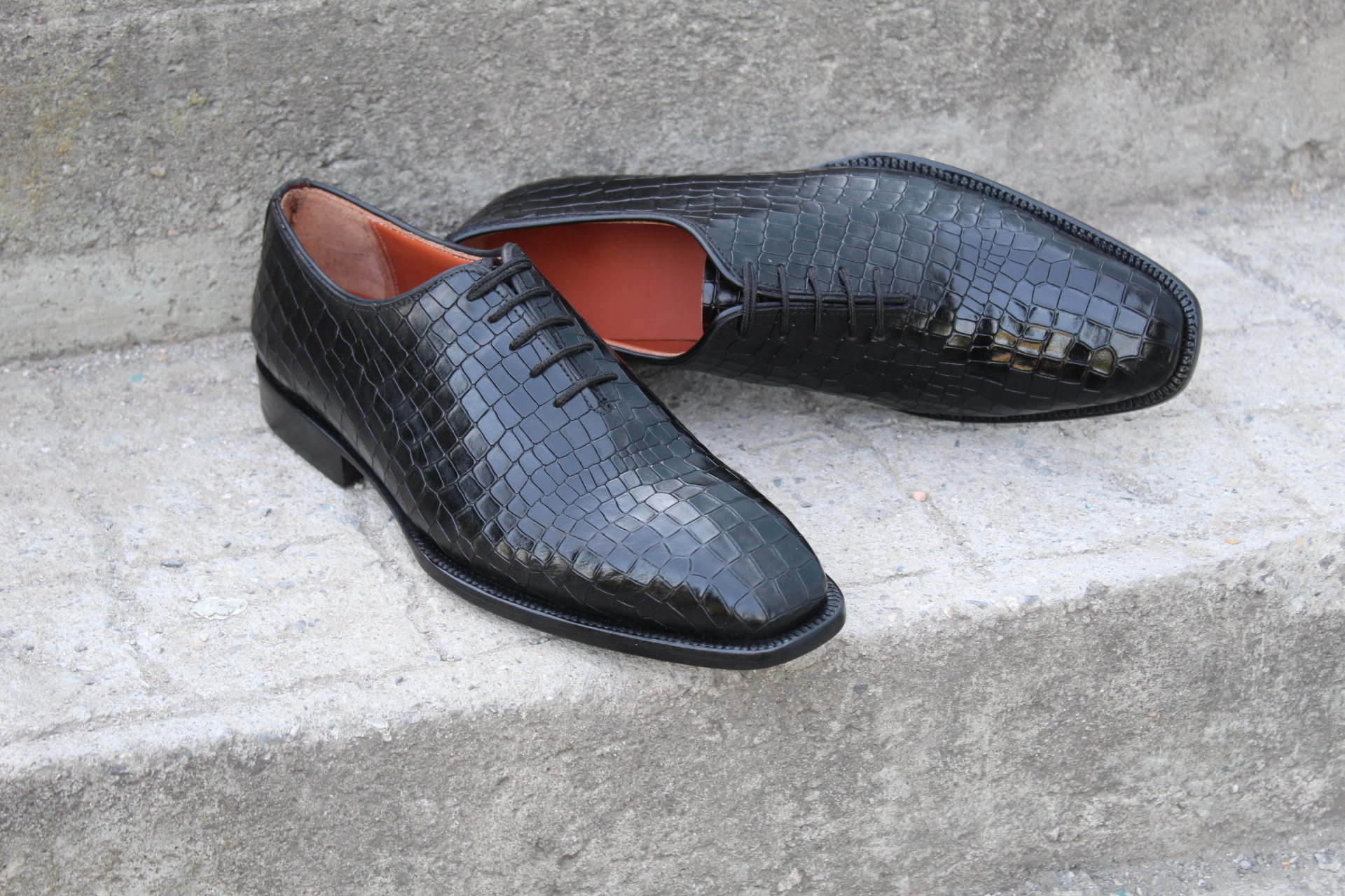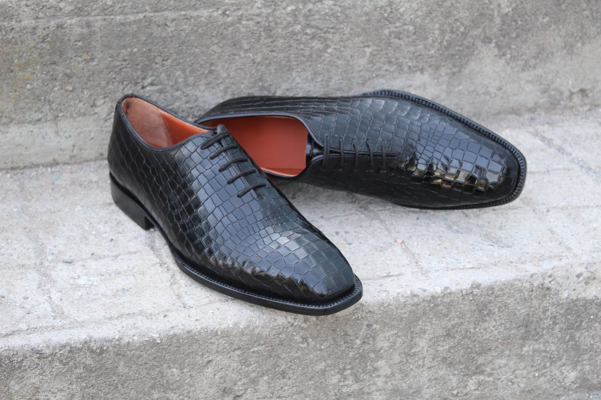 Crafted Leather Classic Black Crocodile/Alligator Dress Shoes