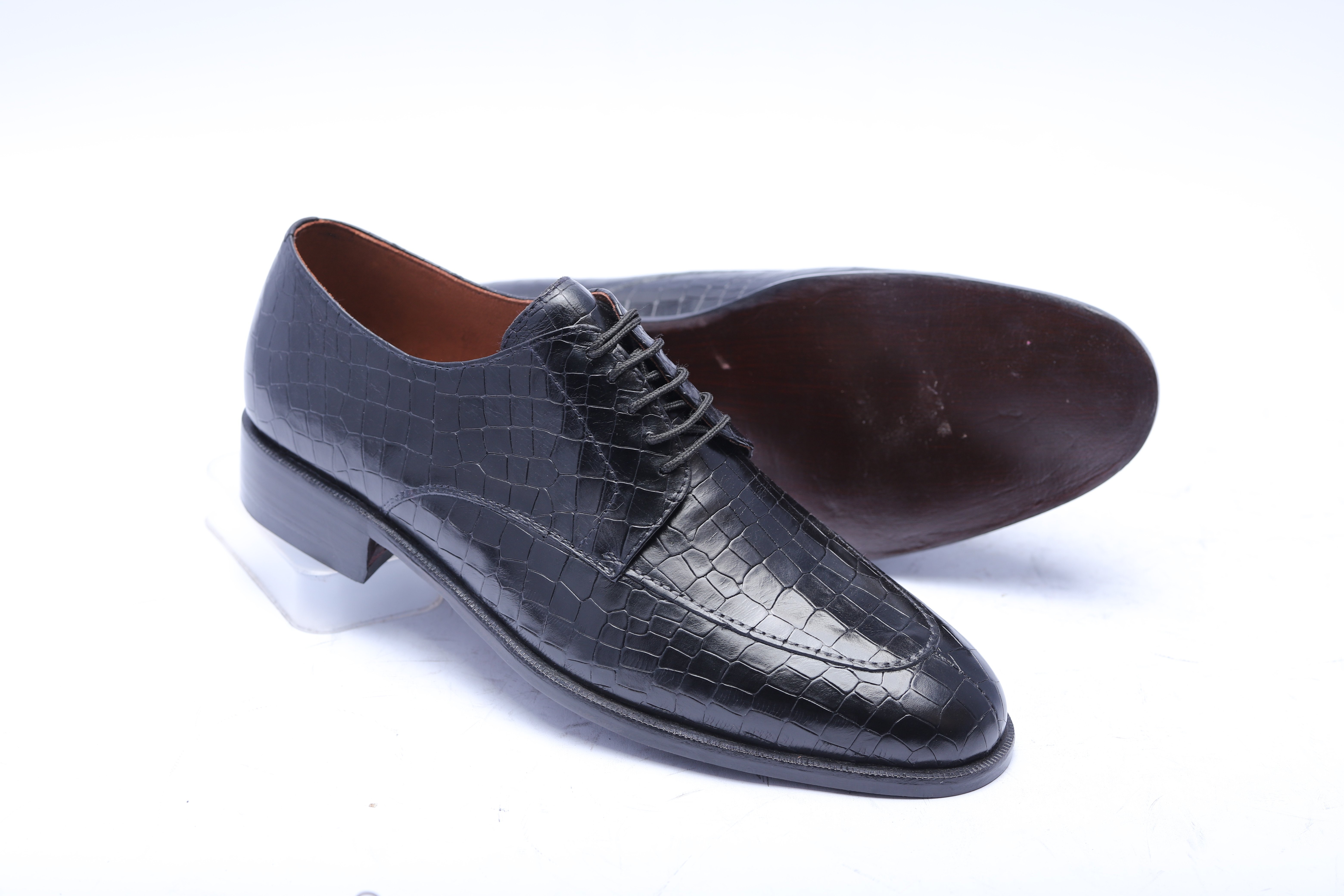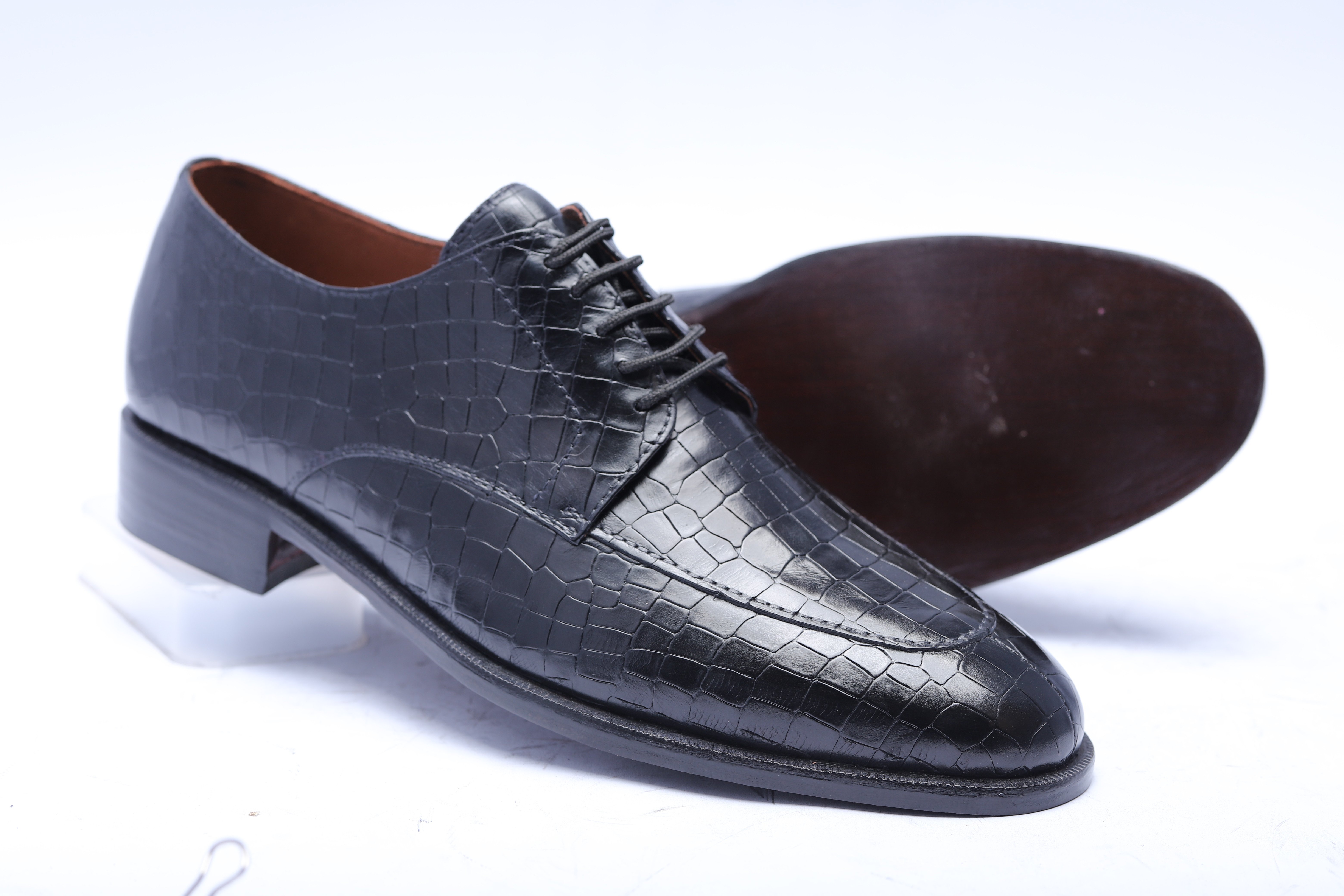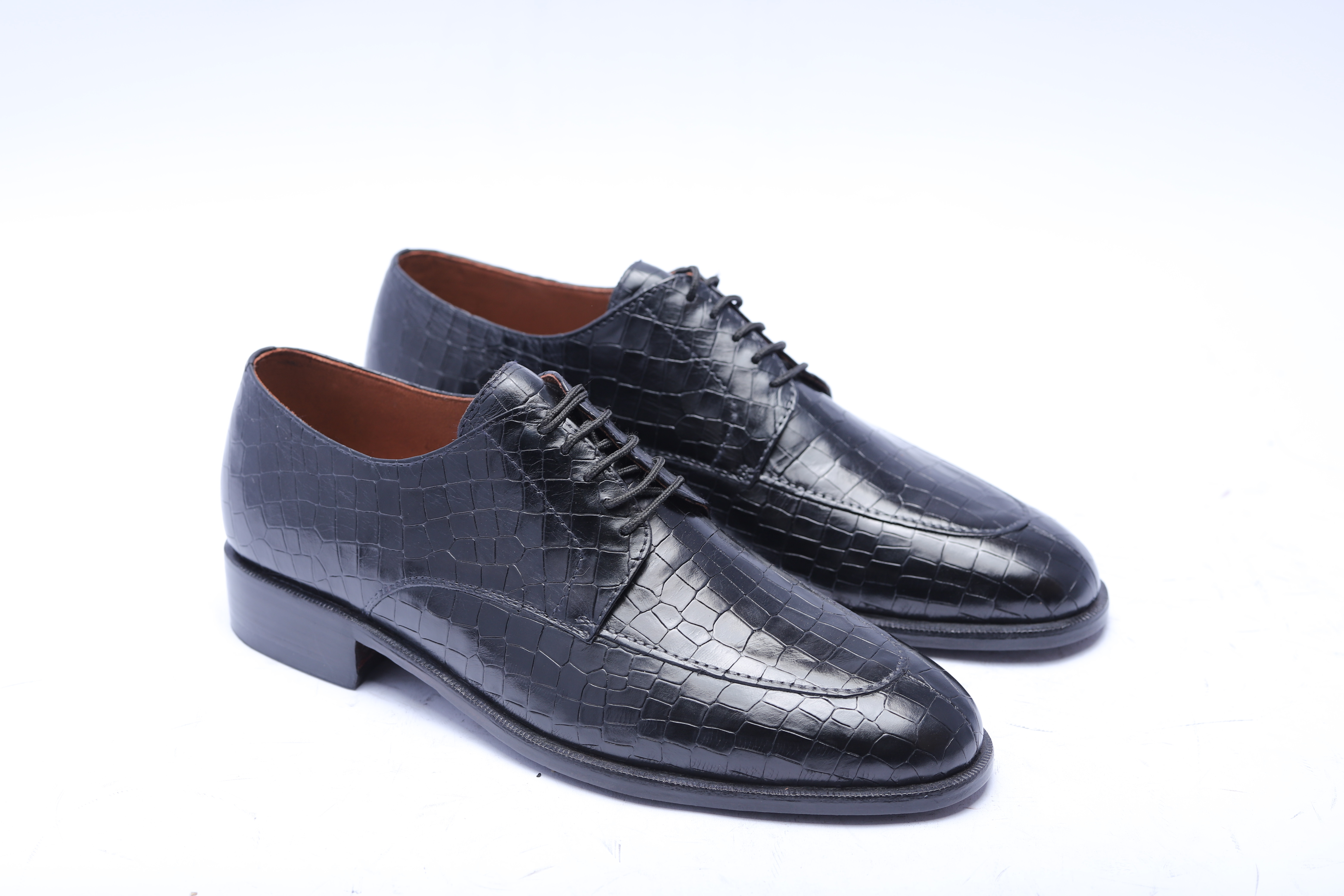 Crafted Leather Classic Black Crocodile Leather Lace up Alligator Dress Shoes