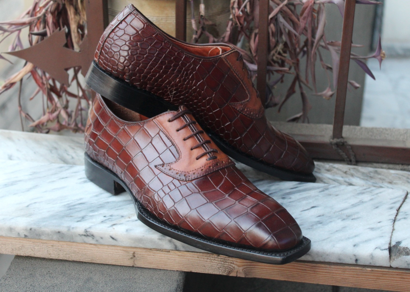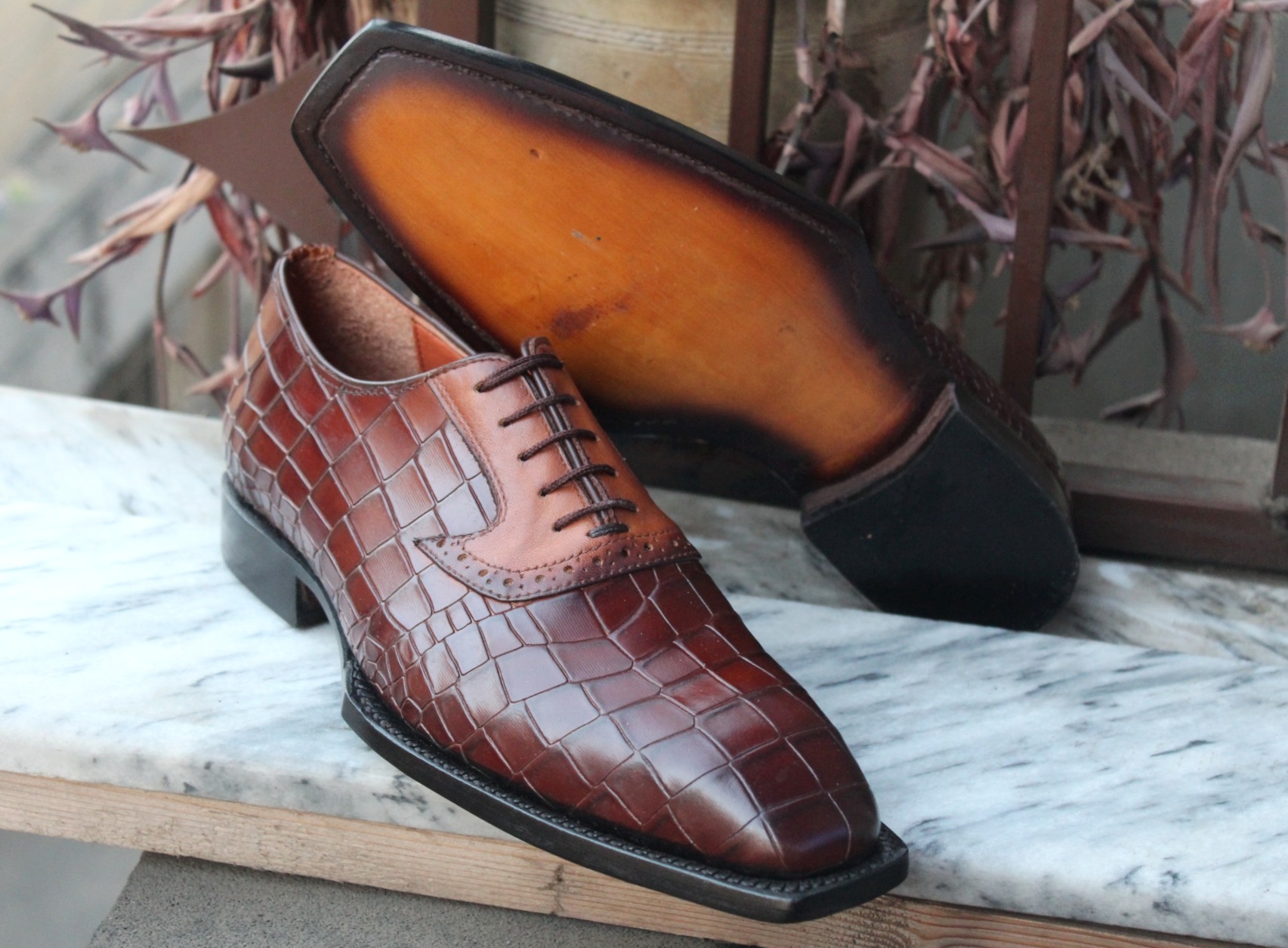 Crafted Leather Handmade Men Brown Crocodile/Alligator Leather Dress Shoes
