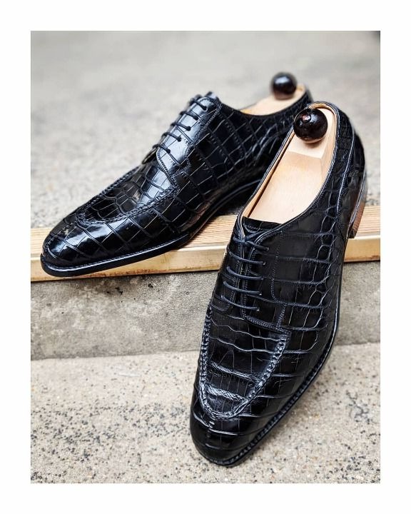 Handmade Men Black Crocodile/Alligator Leather Split Toe Oxford Dress Shoes