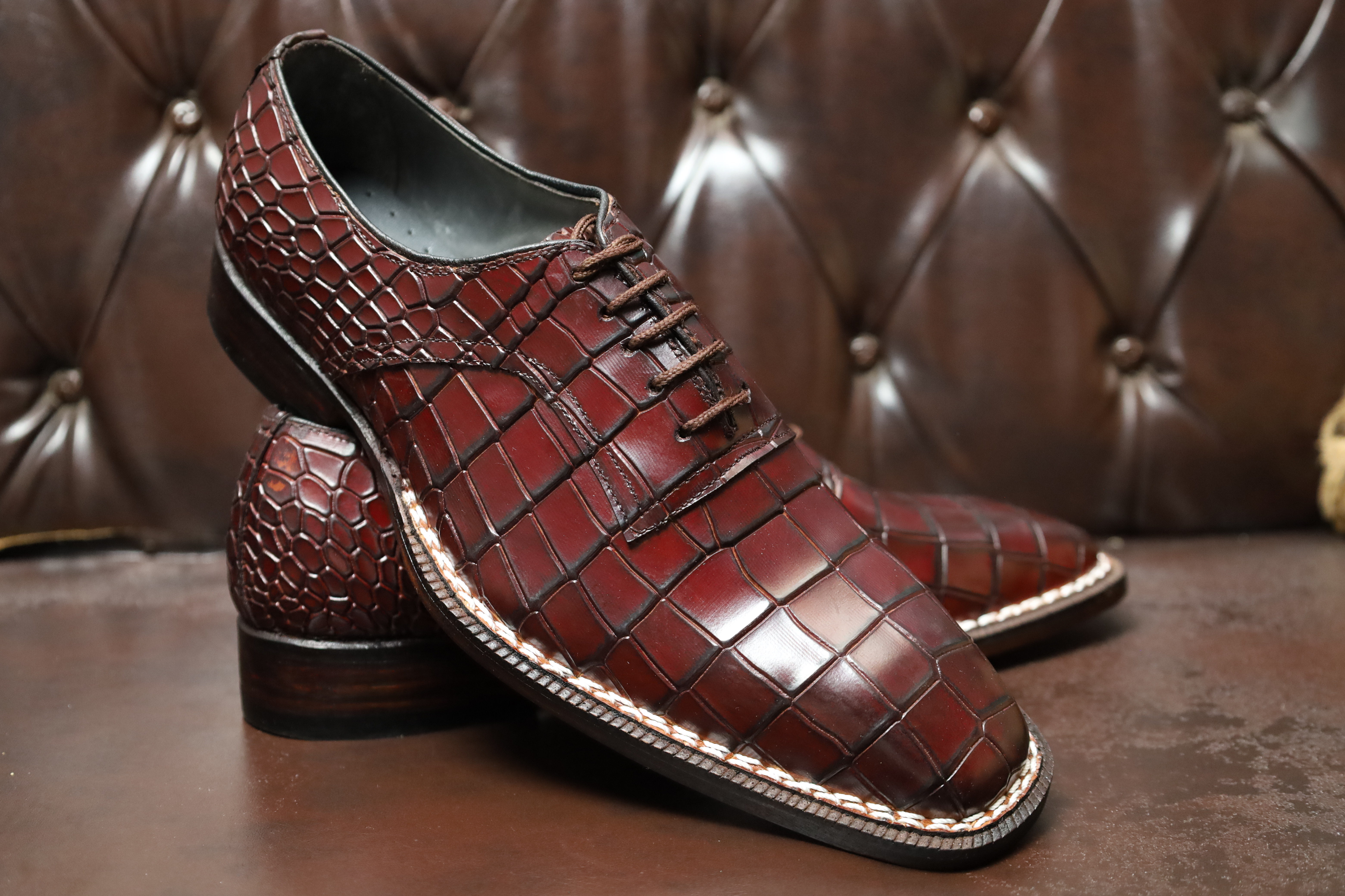 Crafted Leather Oxford Calf Leather Deep Brown Crocodile/Alligator 5mm Hand Welted Men Shoes