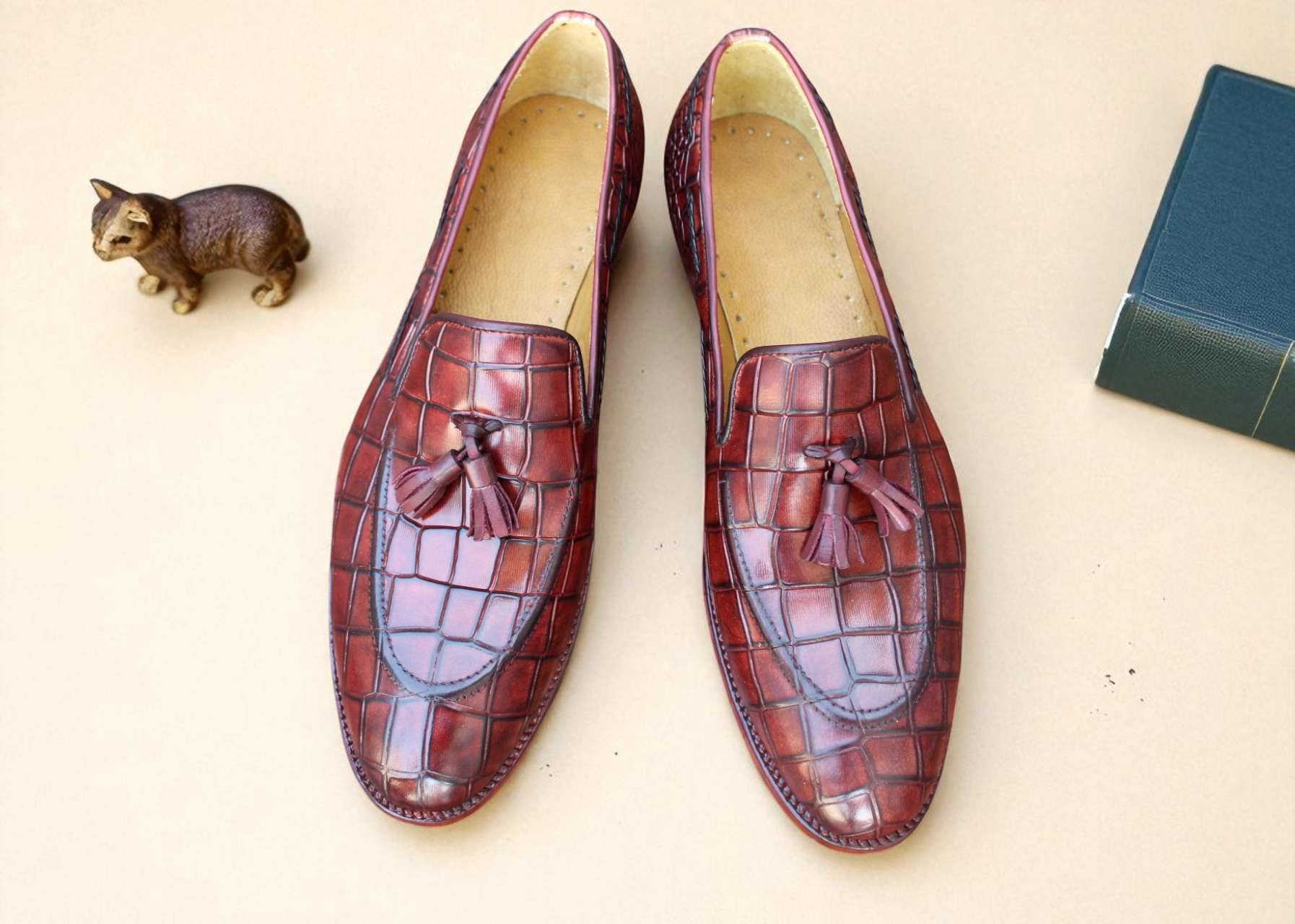 Crafted Leather Handmade Classic Brown Crocodile/Alligator Leather Tassel Loafers Dress Shoes
