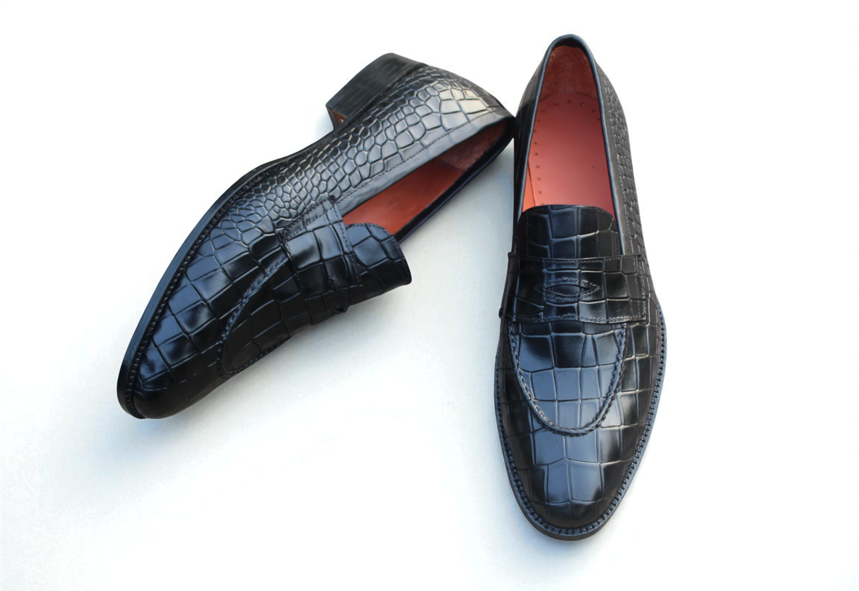 Crafted Leather Classic Men Black Crocodile Leather Loafers Dress Shoes