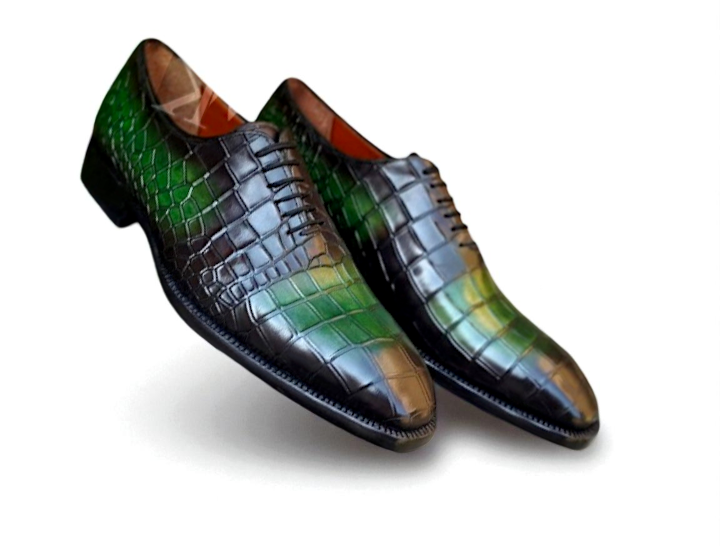Crafted Leather Classic Green Patina Crocodile/Alligator Leather Dress Shoes