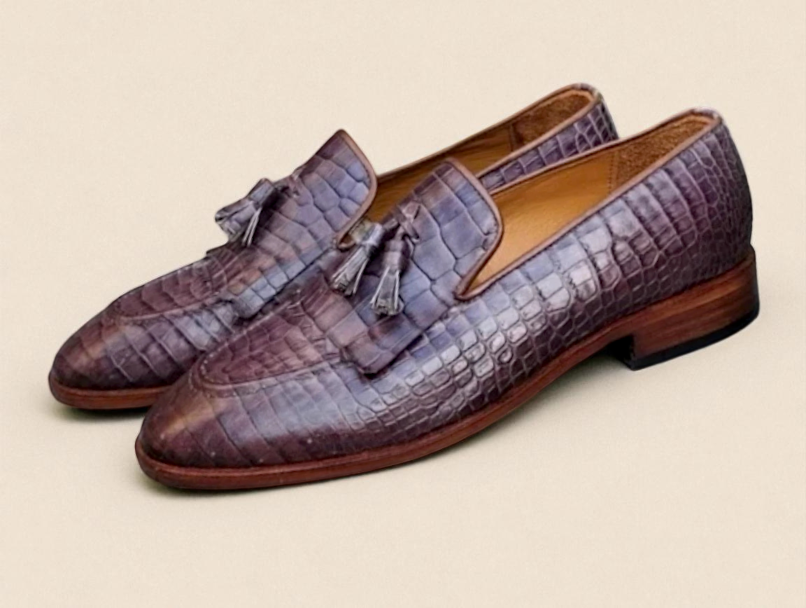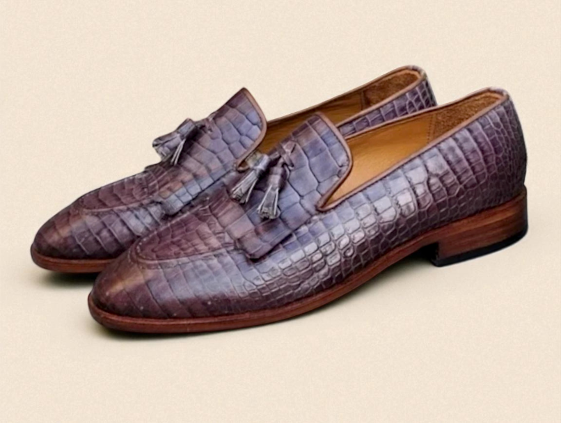 Crafted Leather Genuine Crocodile Leather Tassel Loafers Dress Shoes