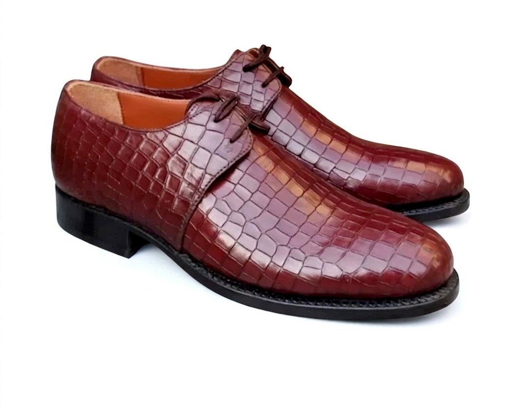 Crafted Leather Classic Men Crocodile Oxford Lace up Alligator Dress Shoes