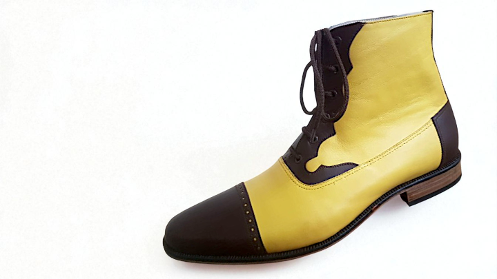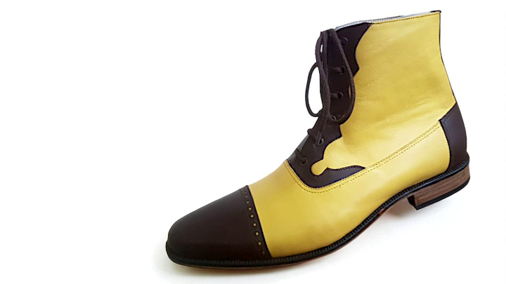 Crafted Leather Classic Handmade Yellow Dark Brown Leather Ankle High Lace up Dress Boot