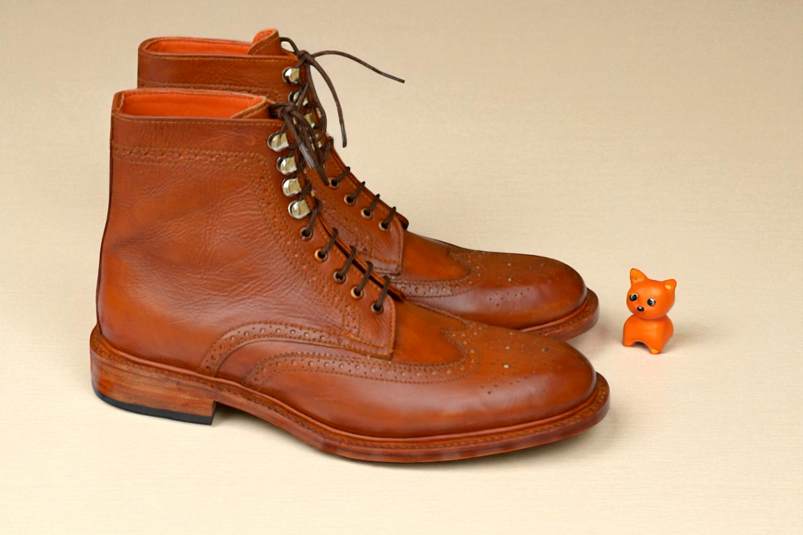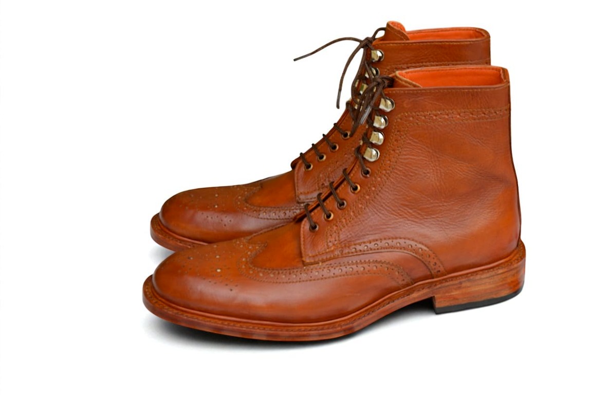Crafted Leather Men Brown Leather Wingtip Ankle High Dress Boot
