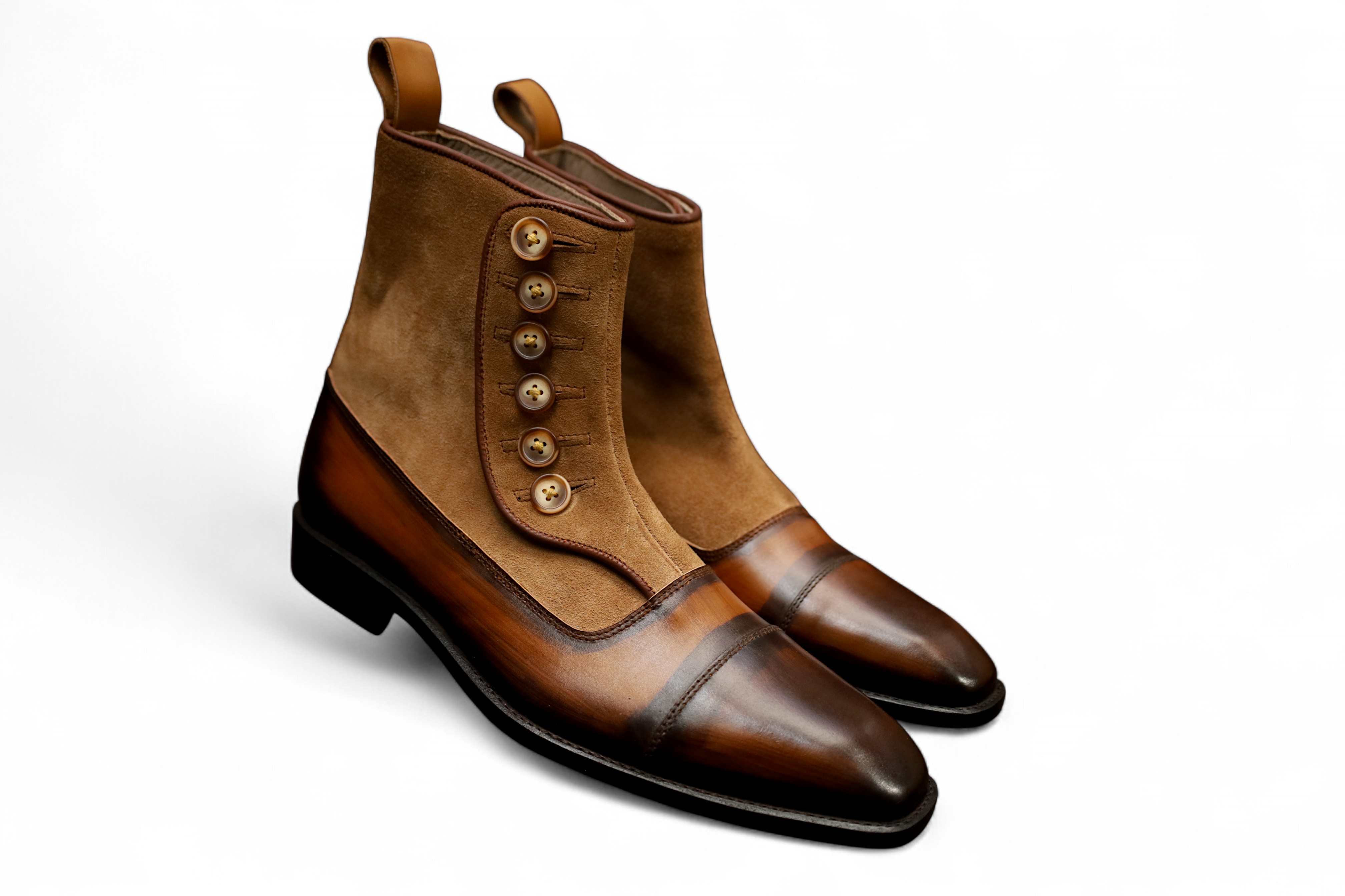 Crafted Leather Classic Men Brown Patina and Brown Suede Ankle High Button Boot