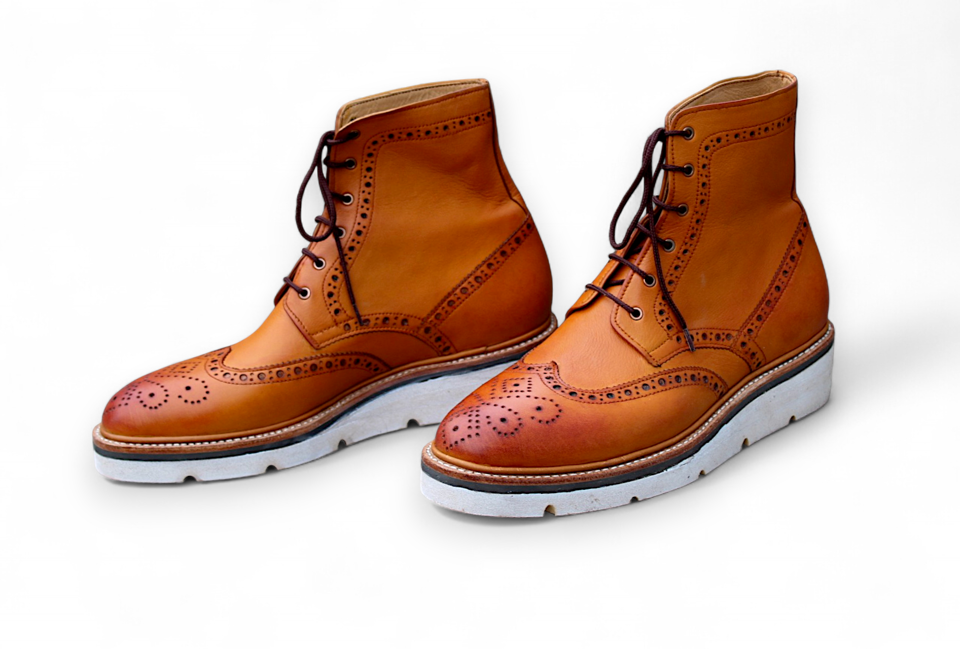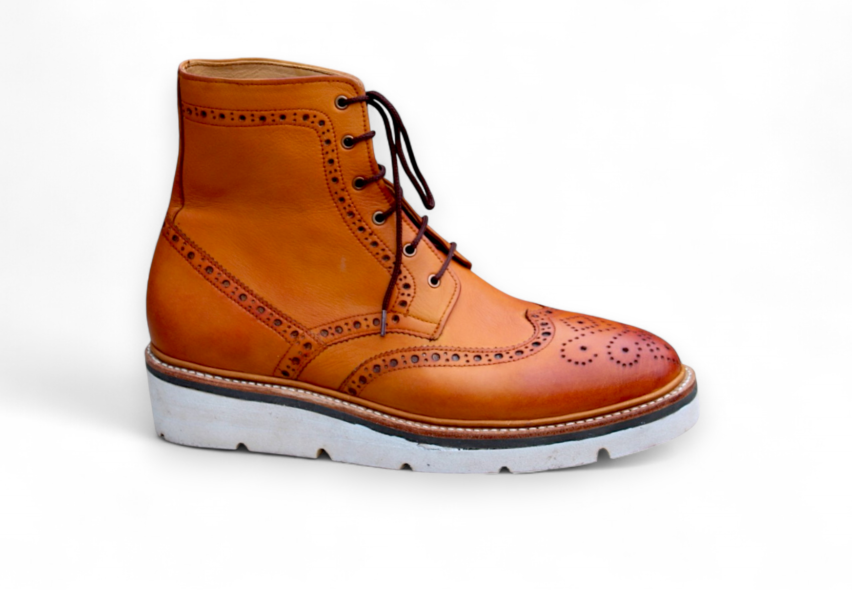 Crafted Leather Bespoke Dress Shoes Brown Leather Classic Ankle High Lace up Wingtip Boot