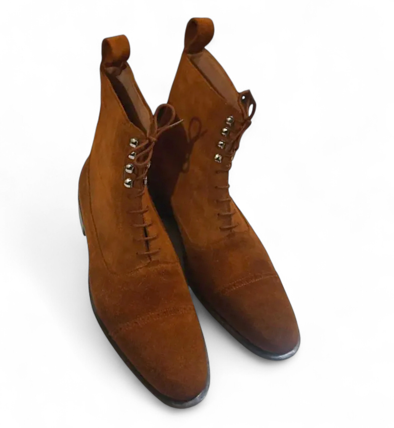 Crafted Leather Men’s Classic Brown Suede Leather Ankle High Boot Lace up Boot