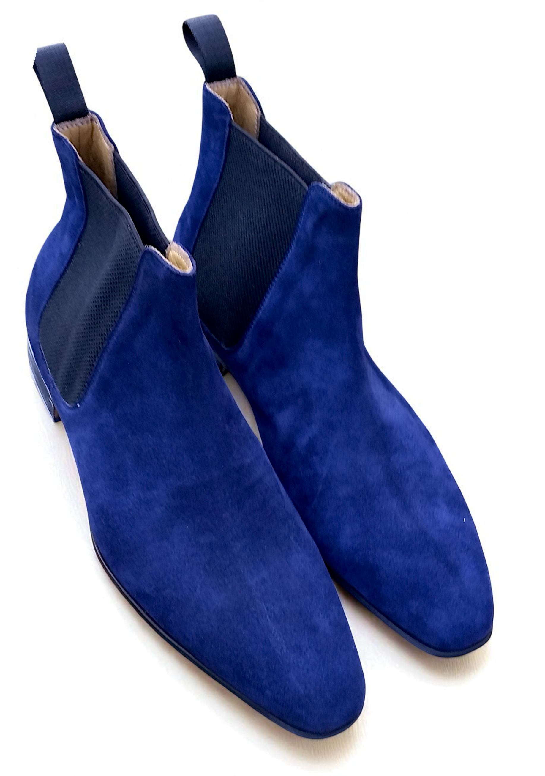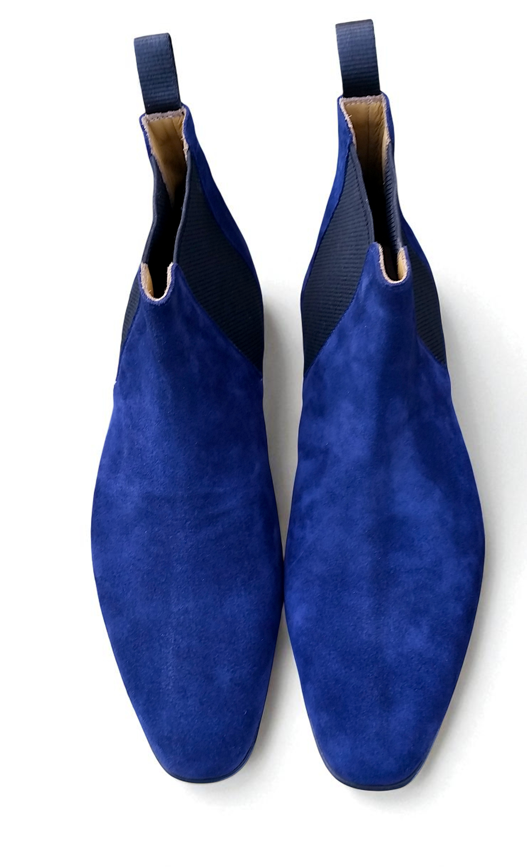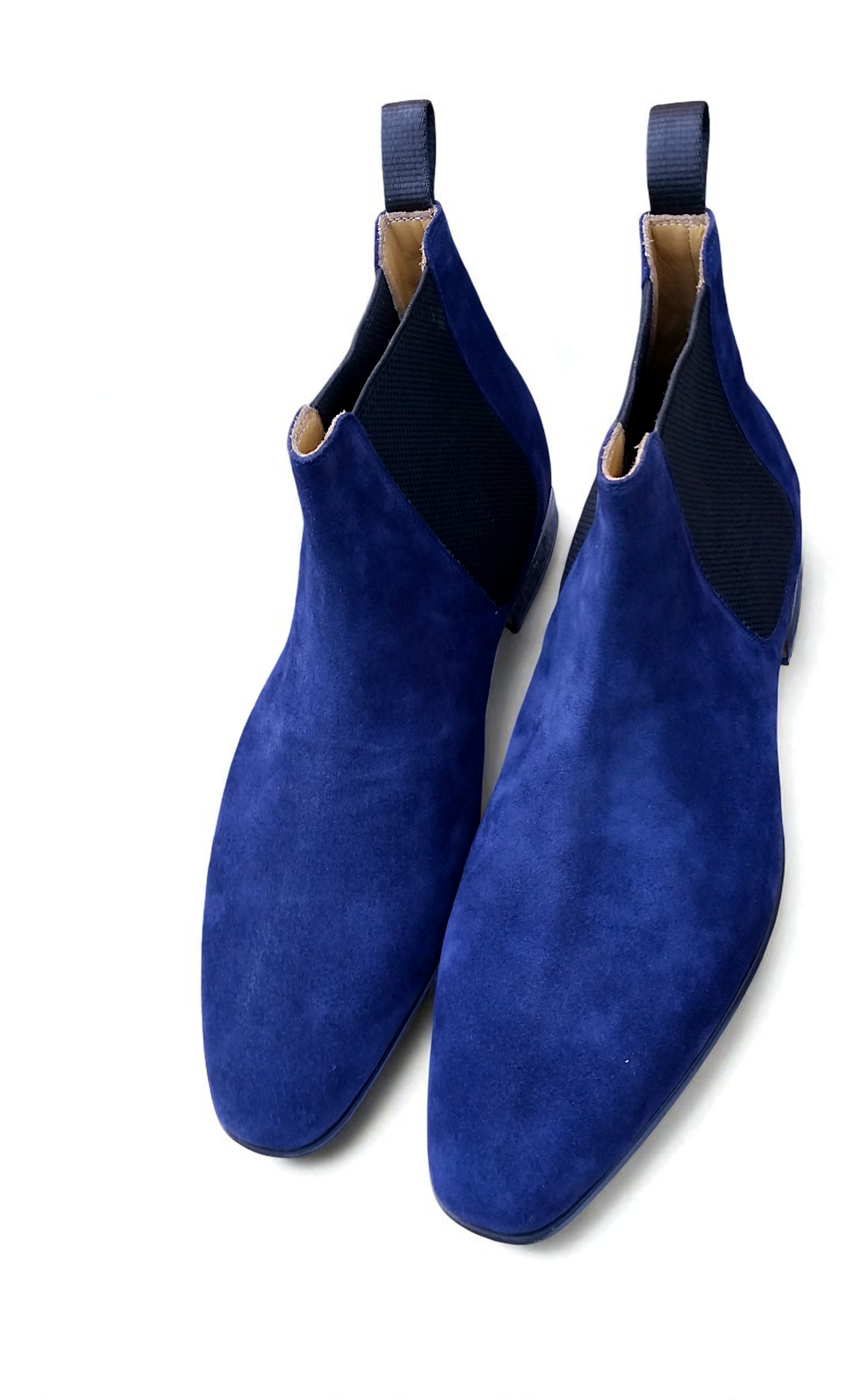 Crafted Leather Classic Blue Suede Leather Chelsea Dress Boot