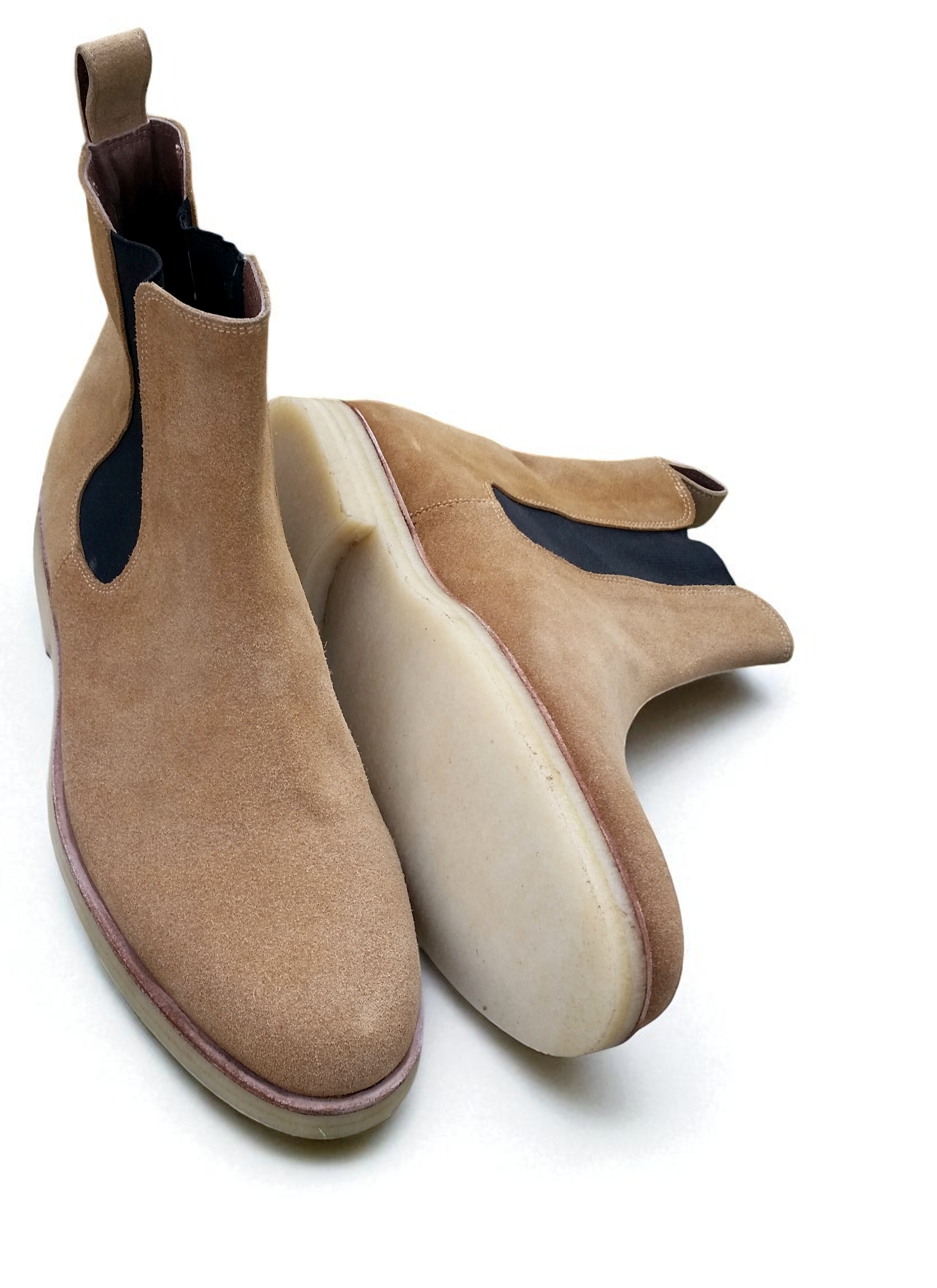 Crafted Leather Classic Beige Suede Leather Chelsea Dress Boot