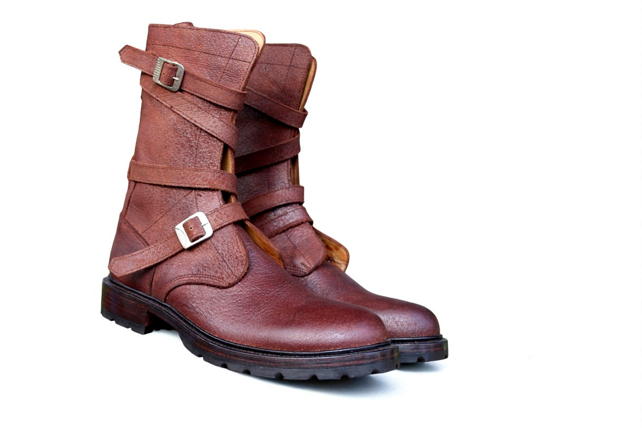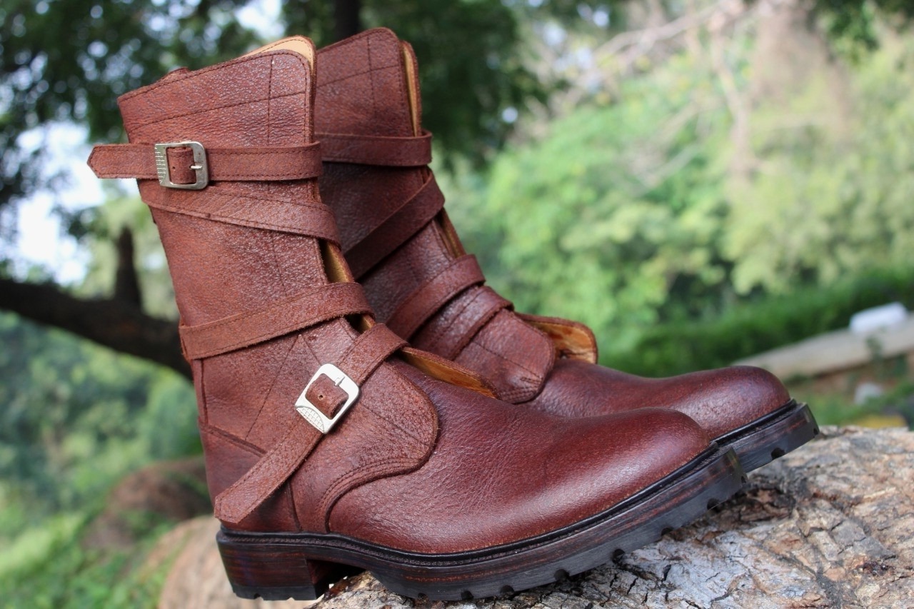 Crafted Leather Handmade Men's Brown Grain Leather Military Strap Ankle High Combat Jodhpur Boot