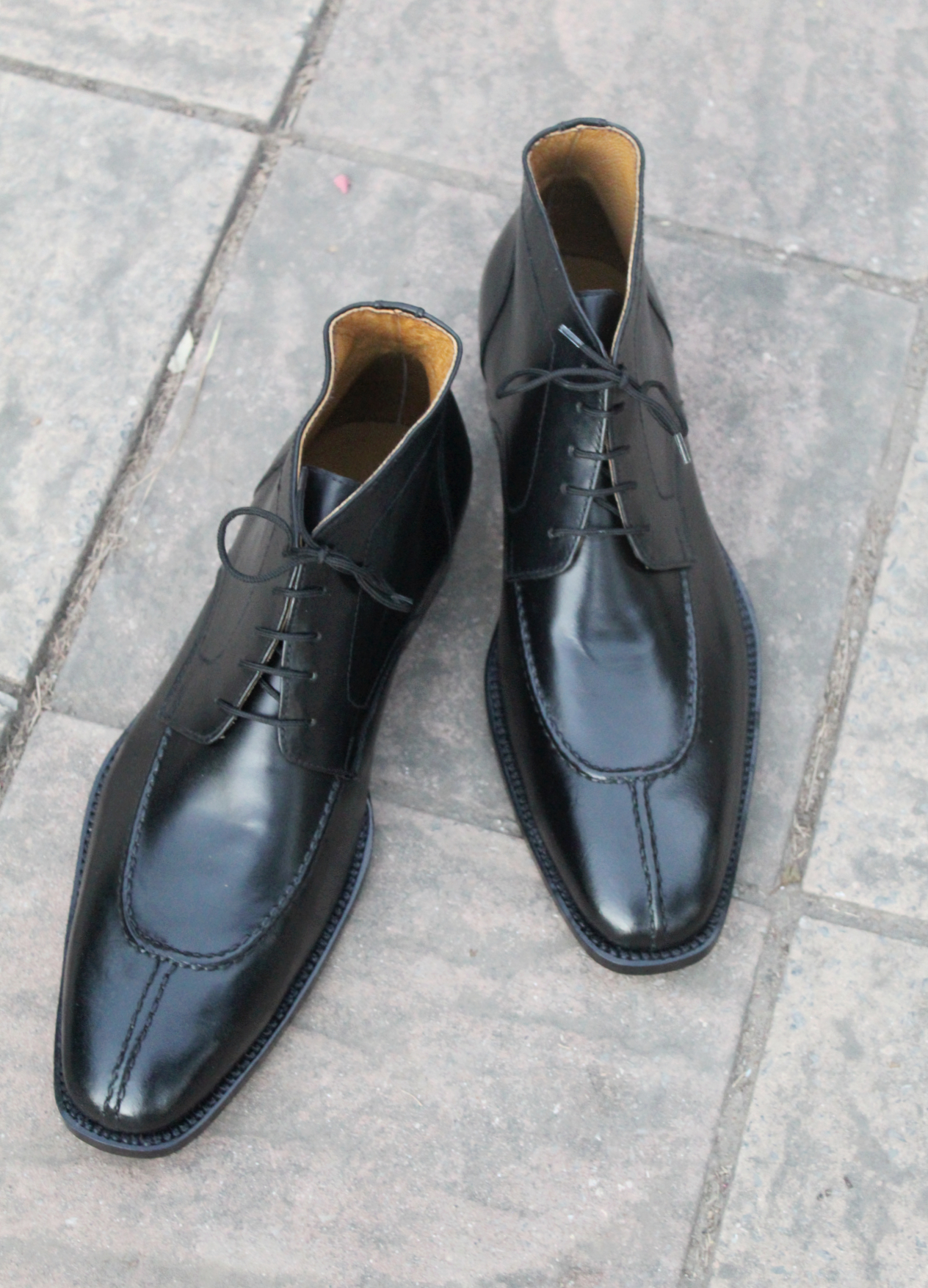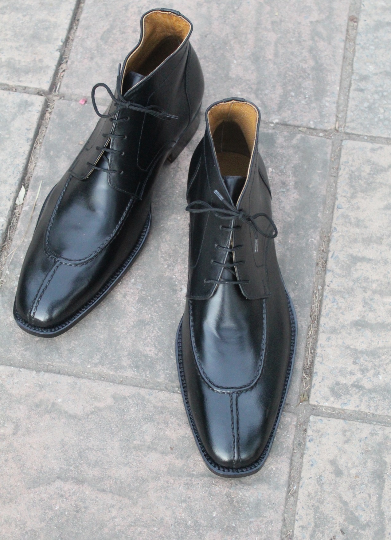 Inner: Soft Leather Sole: Leather Gender : Male Heel: Leather Color: Black Style: Chukka Boot Lining Soft Calf Leather Lining Totally Hand stitched Manufacturing time 7-10 business days If you can’t find your Size/Colorjust send us message we will make for you.