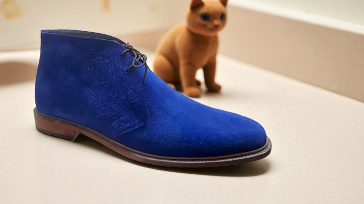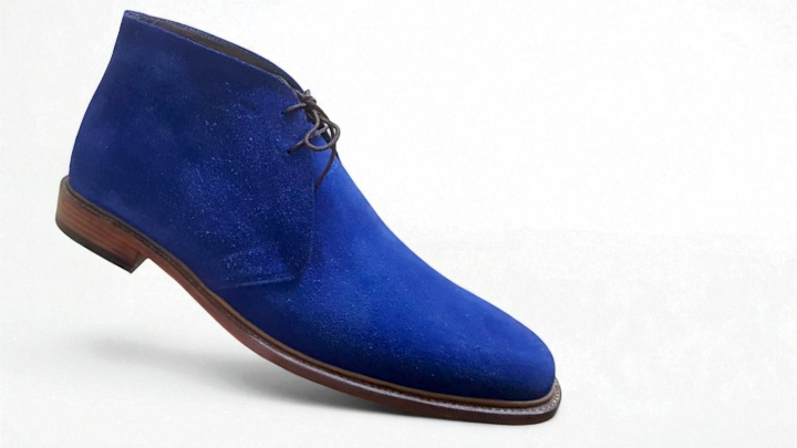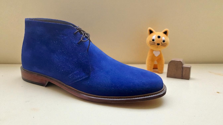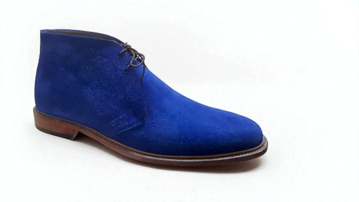 Crafted Leather Classic Handmade Blue Suede Leather Chukka Dress Boot
