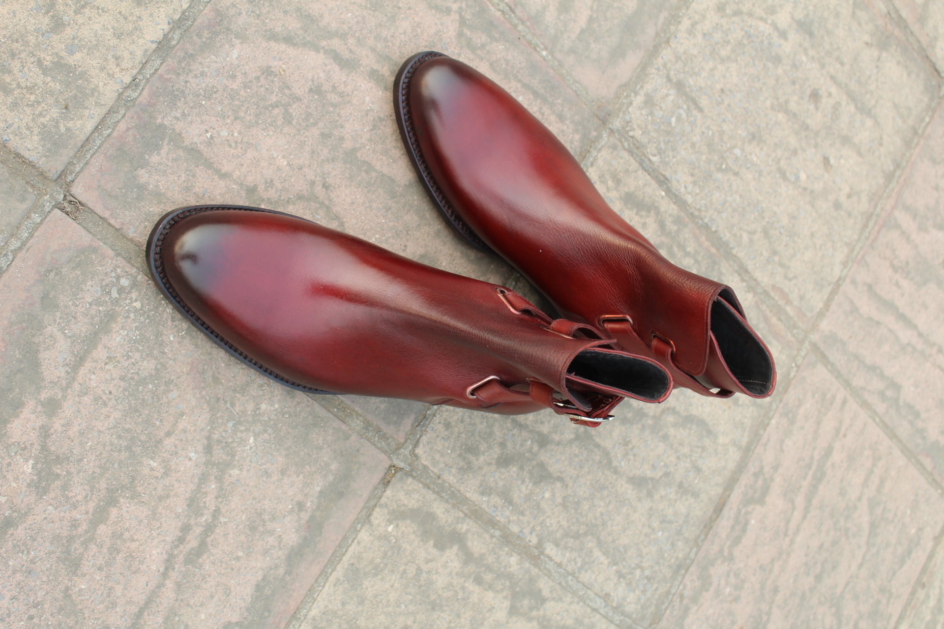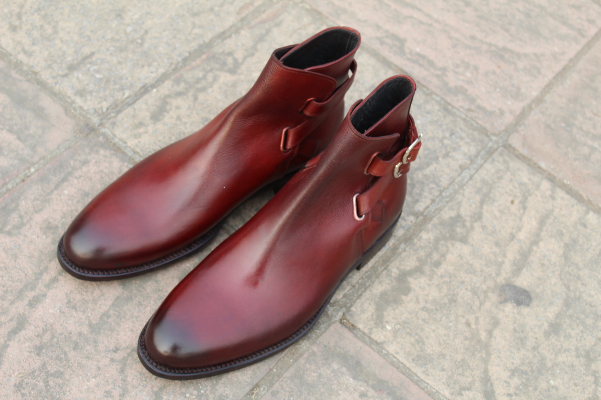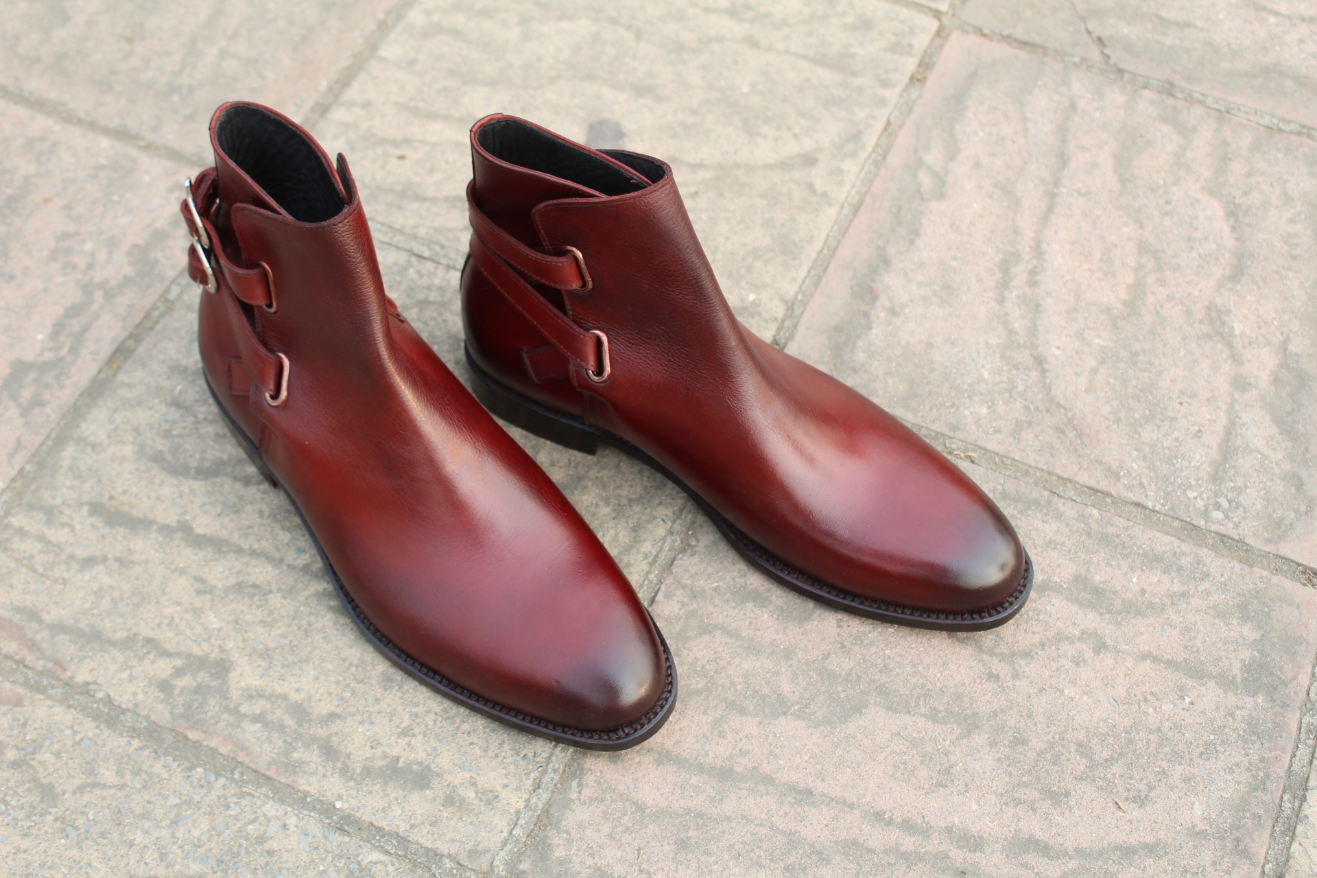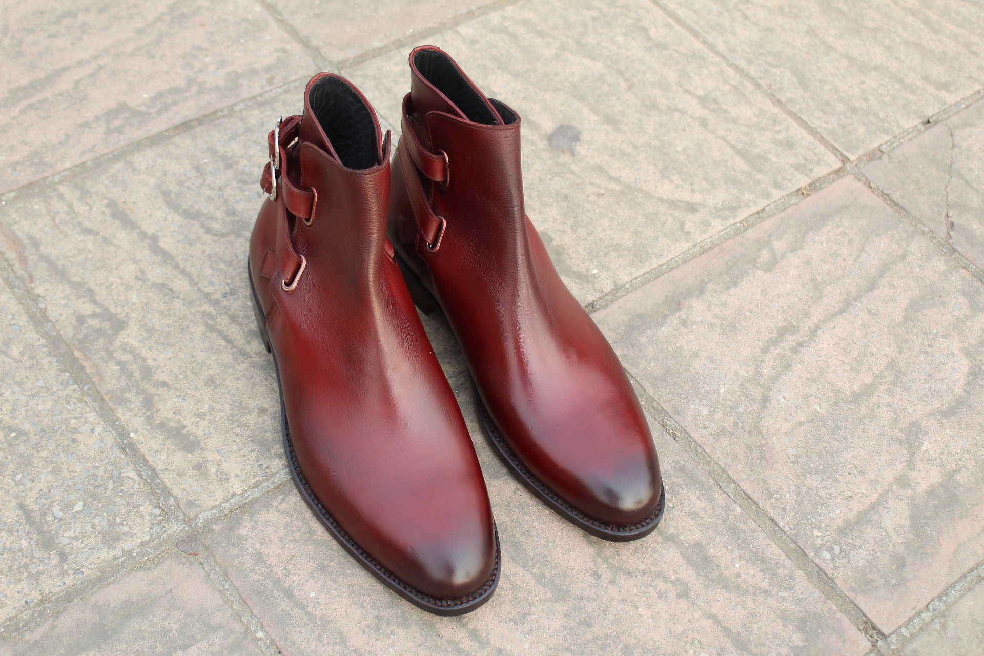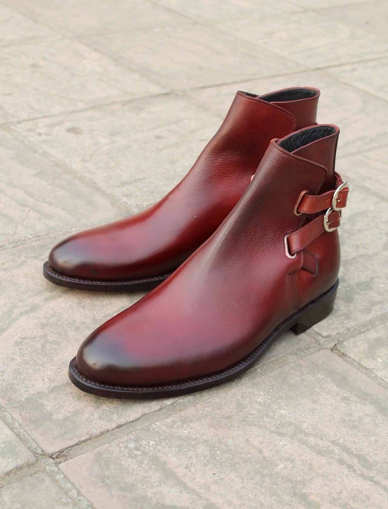 Crafted Leather Bespoke Dress Shoes Burgundy Leather Double Buckle Jodhpur Boot