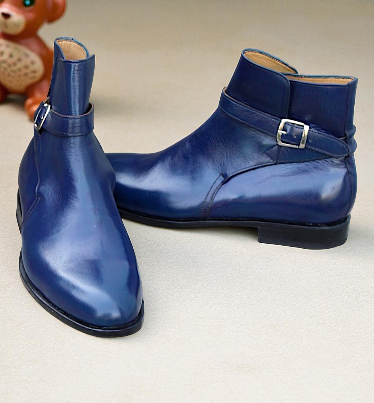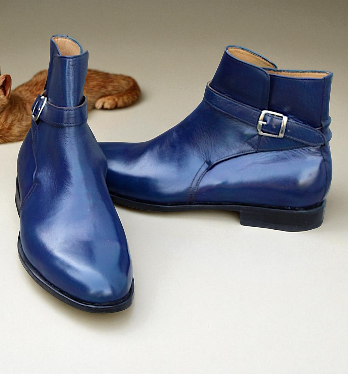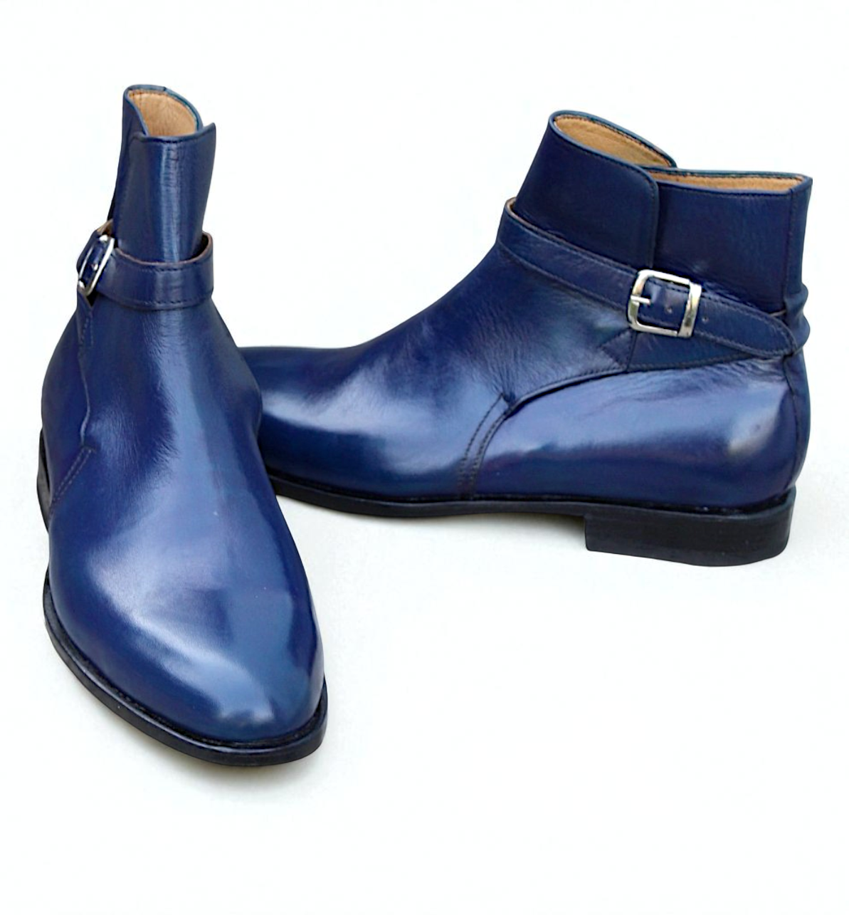 Inner: Soft Leather Sole: Leather Gender : Male Heel: Leather Color: Blue Style: Jodhpur Buckle Strap Boot Lining Soft Calf Leather Lining Totally Hand stitched Manufacturing time 7-10 business days If you can’t find your Size/Colorjust send us message we will make for you.
