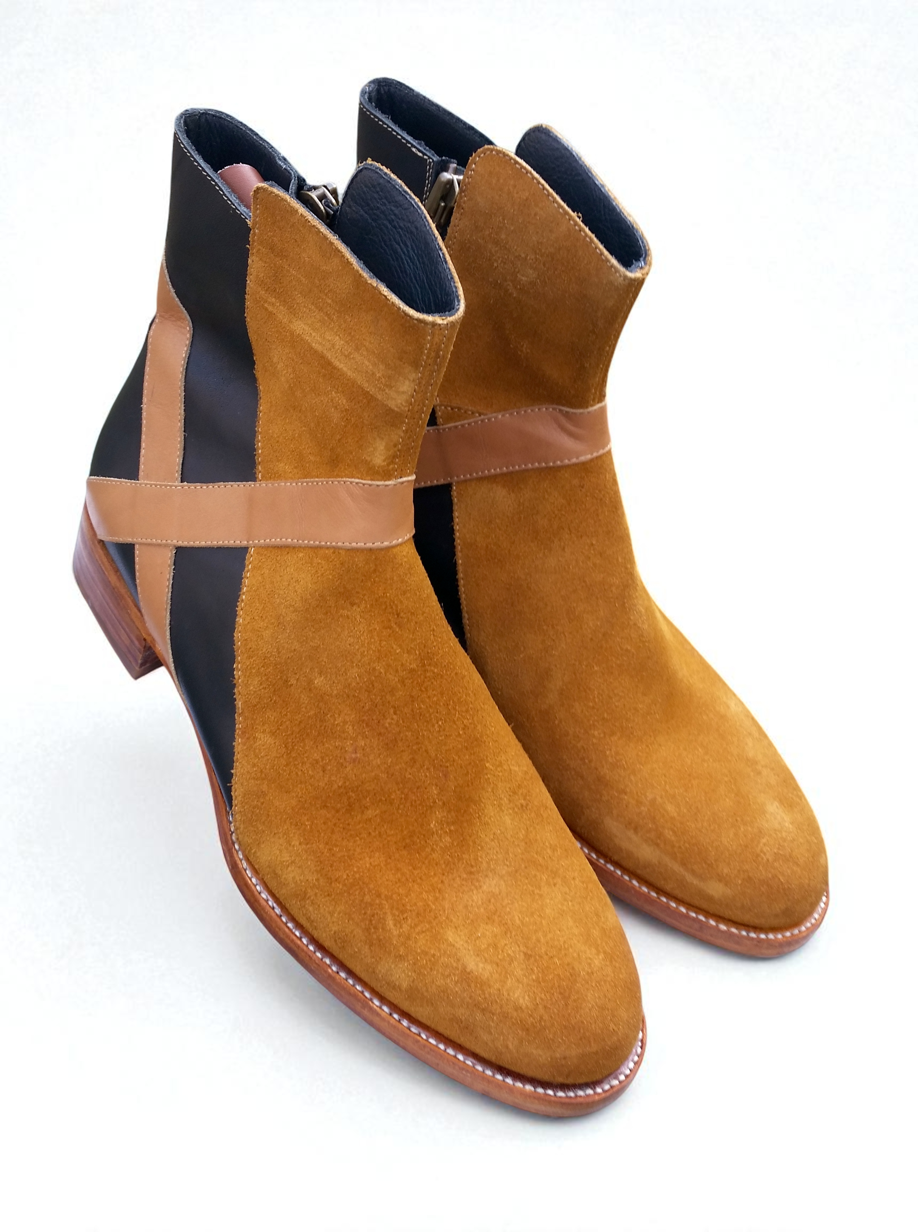 Crafted Leather Classic Men Brown Black Suede Leather Jodhpur Buckle Strap Boot