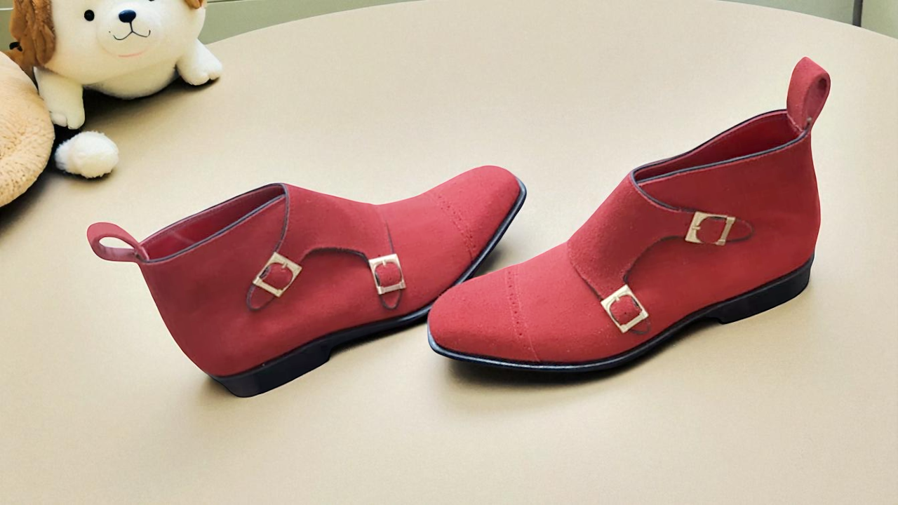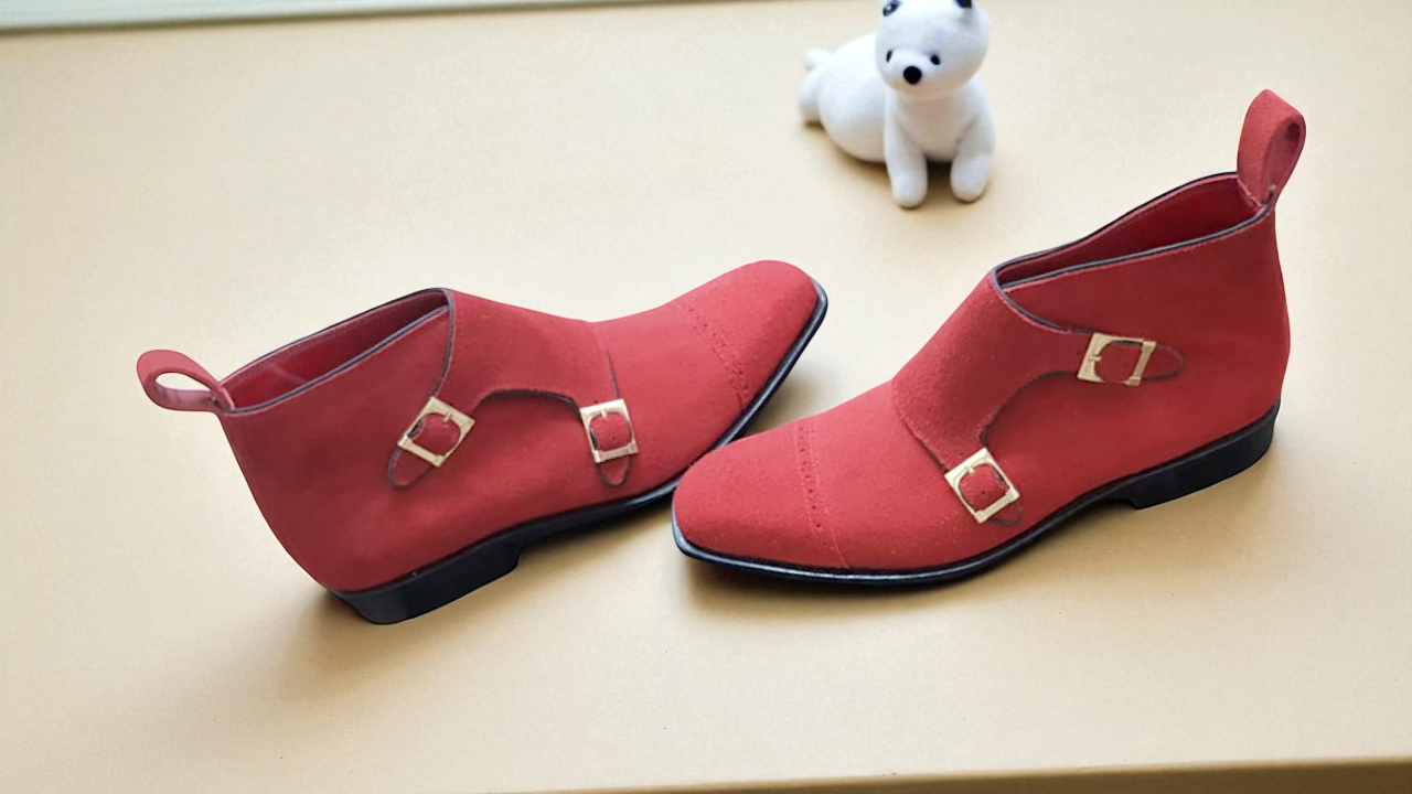 Crafted Leather Classic Red Suede Leather Double Buckle Strap Jodhpur Dress Boot