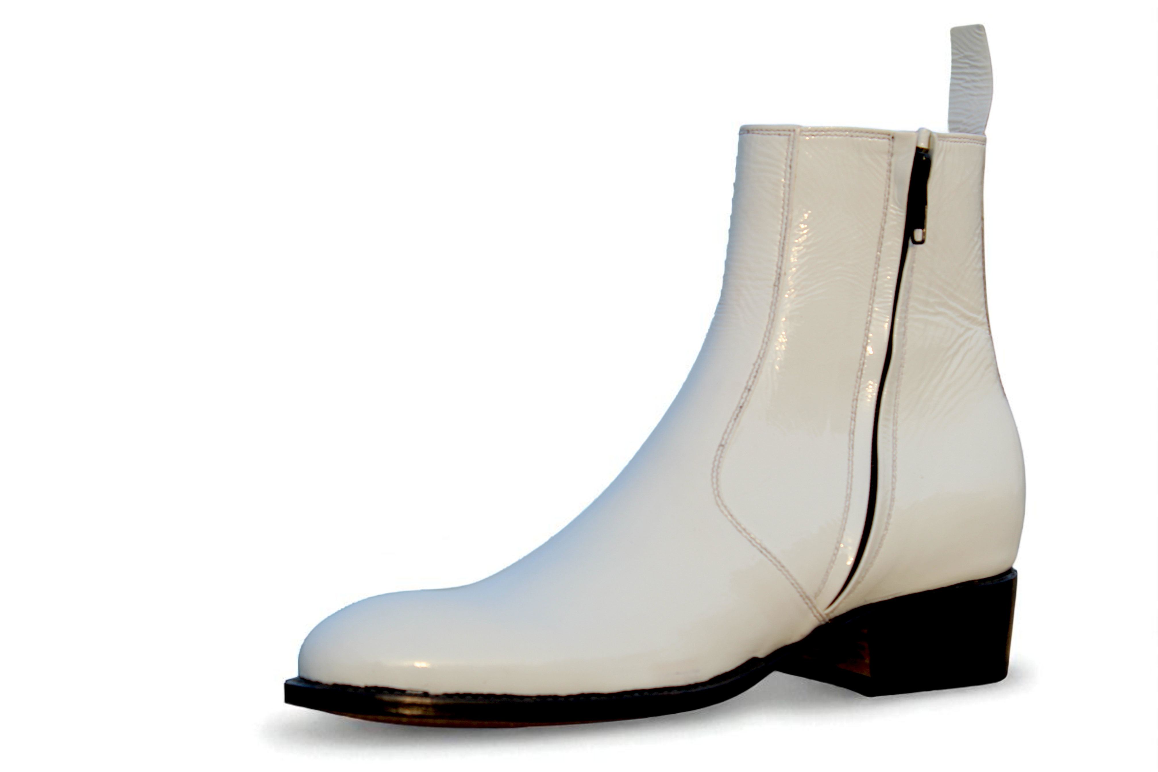 Crafted Leather White Patent Leather Ankle High Side Zipper Jodhpur Boot