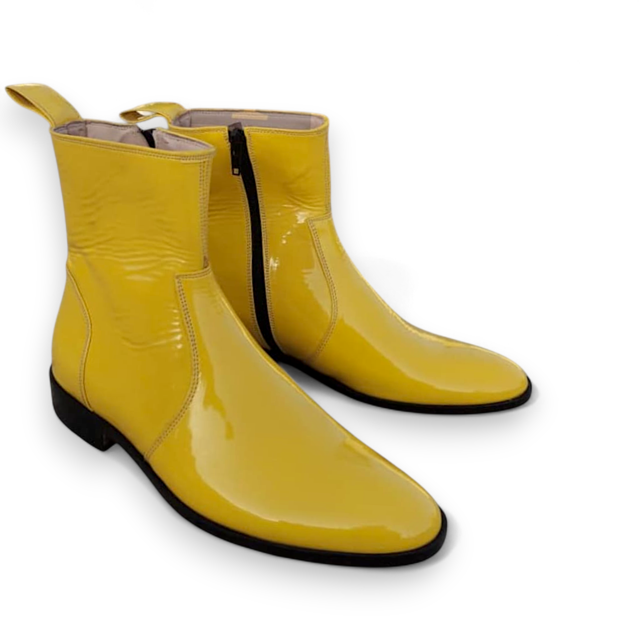 Crafted Leather Classic Men Dress Shoes Yellow Patent Leather Jodhpur Side Zipper Boot