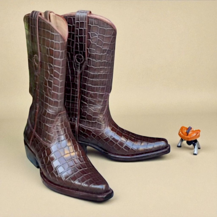 Crafted Leather Classic Brown Dress Shoes Crocodile/Alligator Leather Belly Cowboy Boot