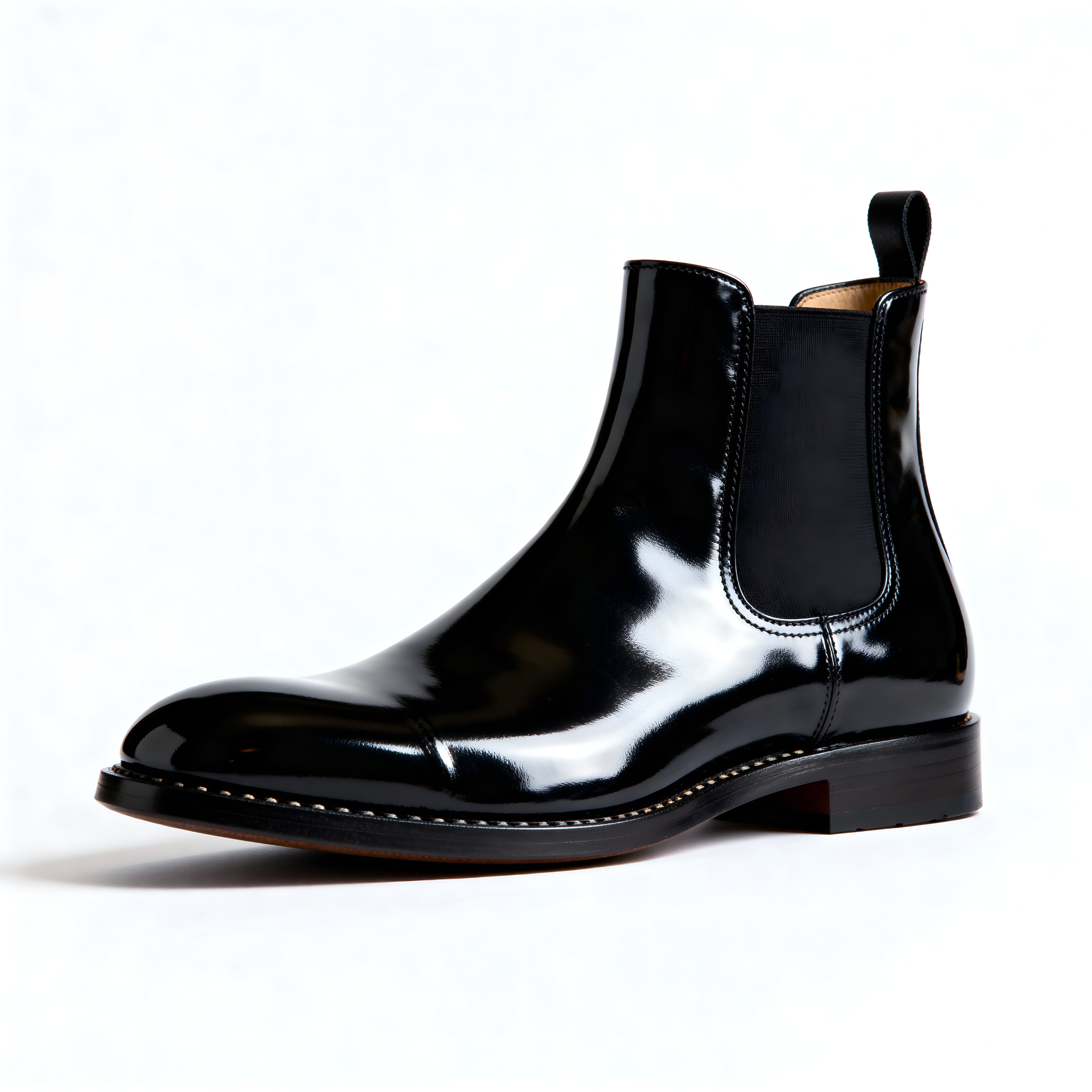 Crafted Leather Mens Black Patent Leather Chelsea Boot