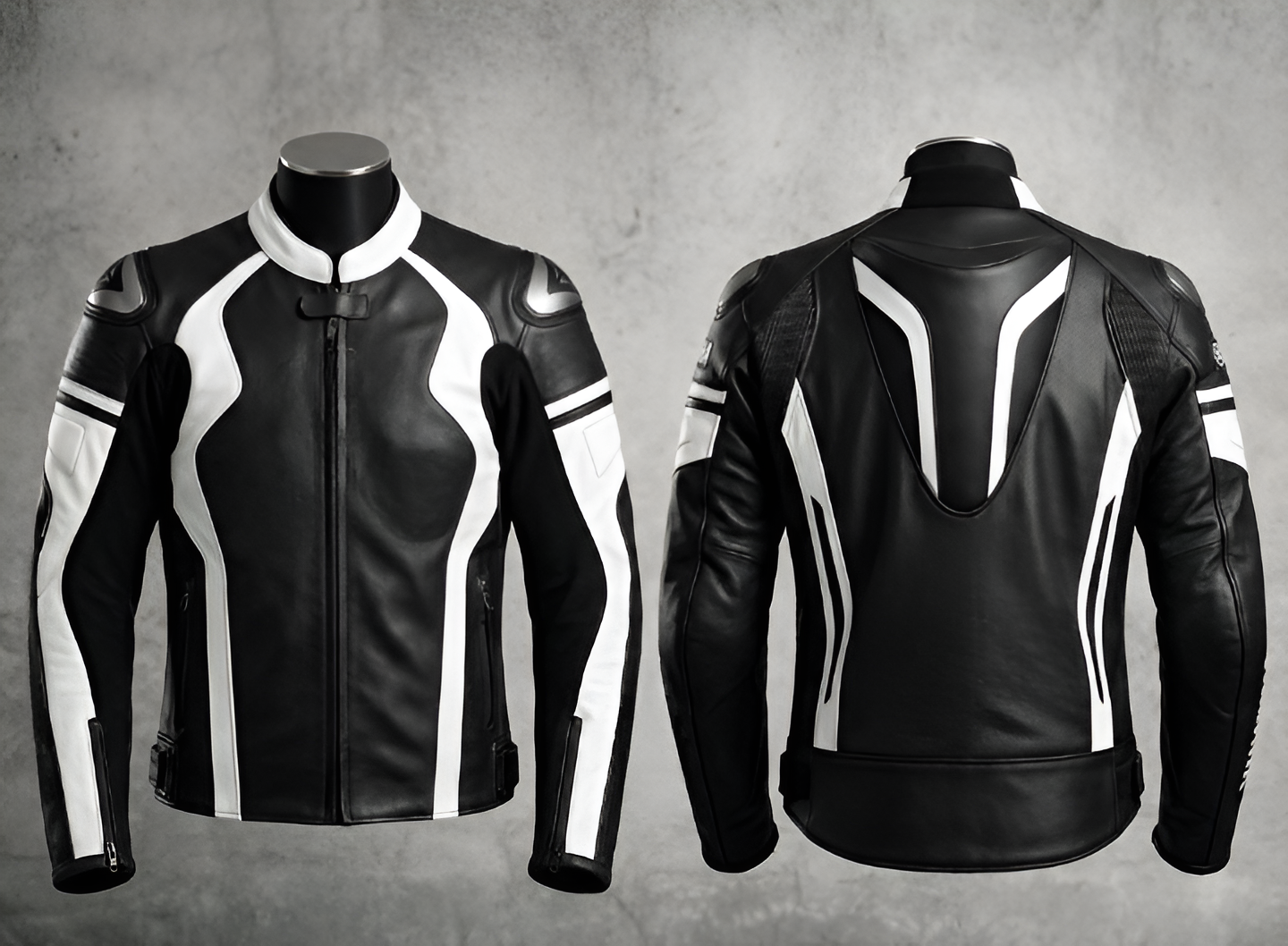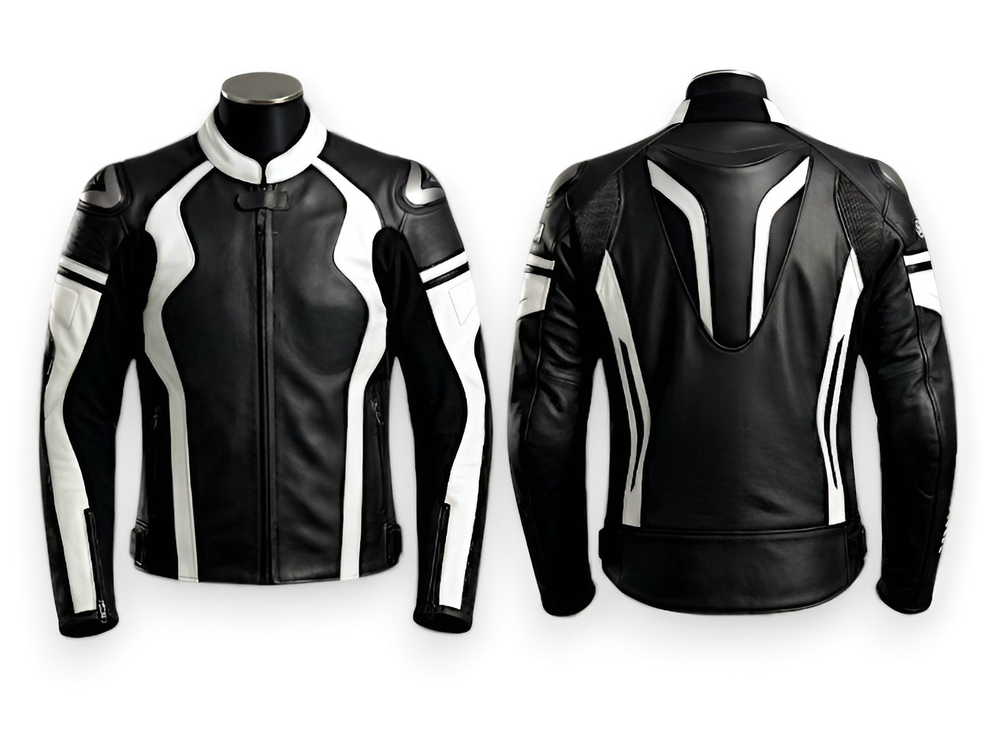 Crafted Leather Designer Racing Black White Leather Biker Motorcycle Jacket