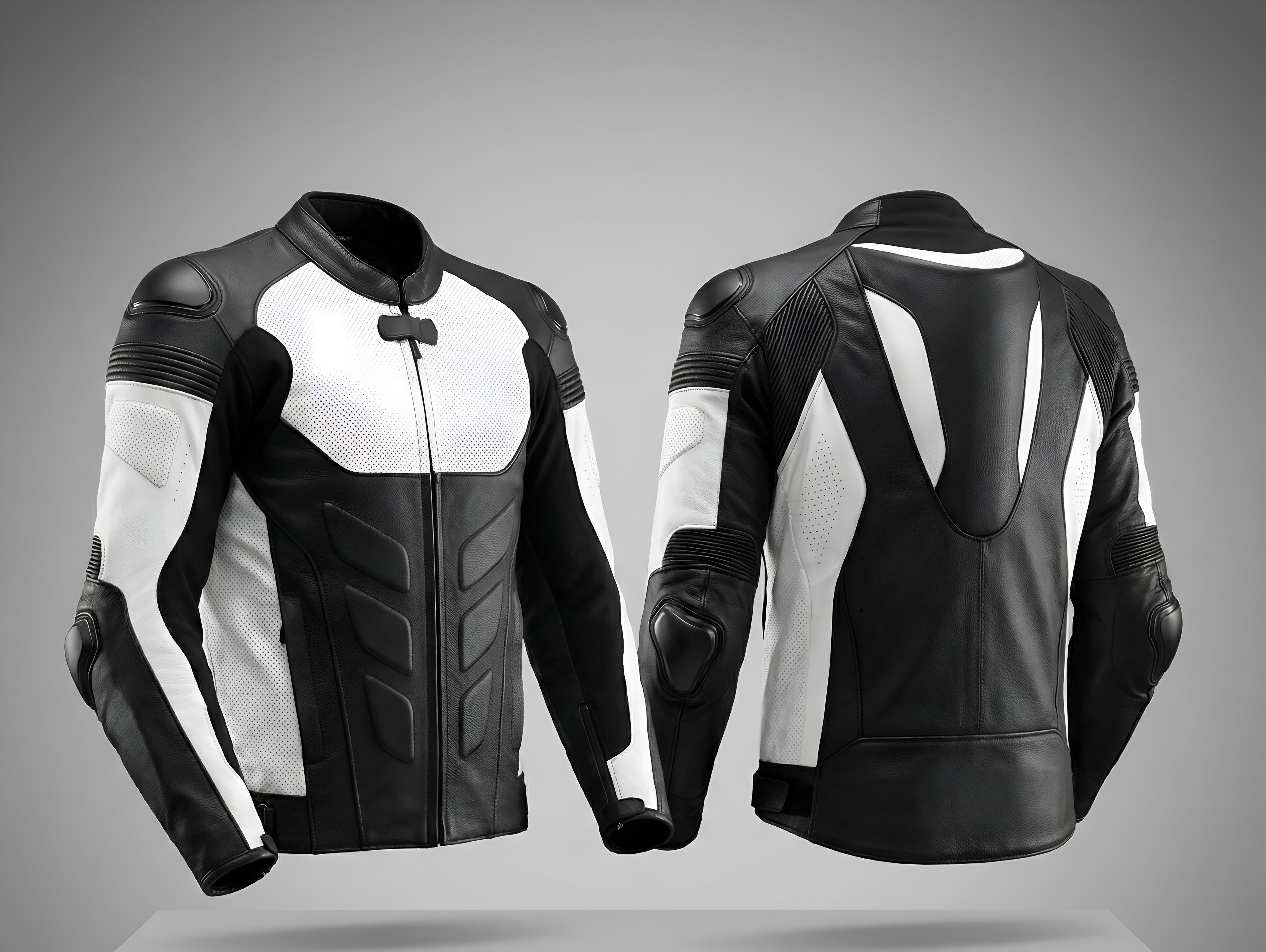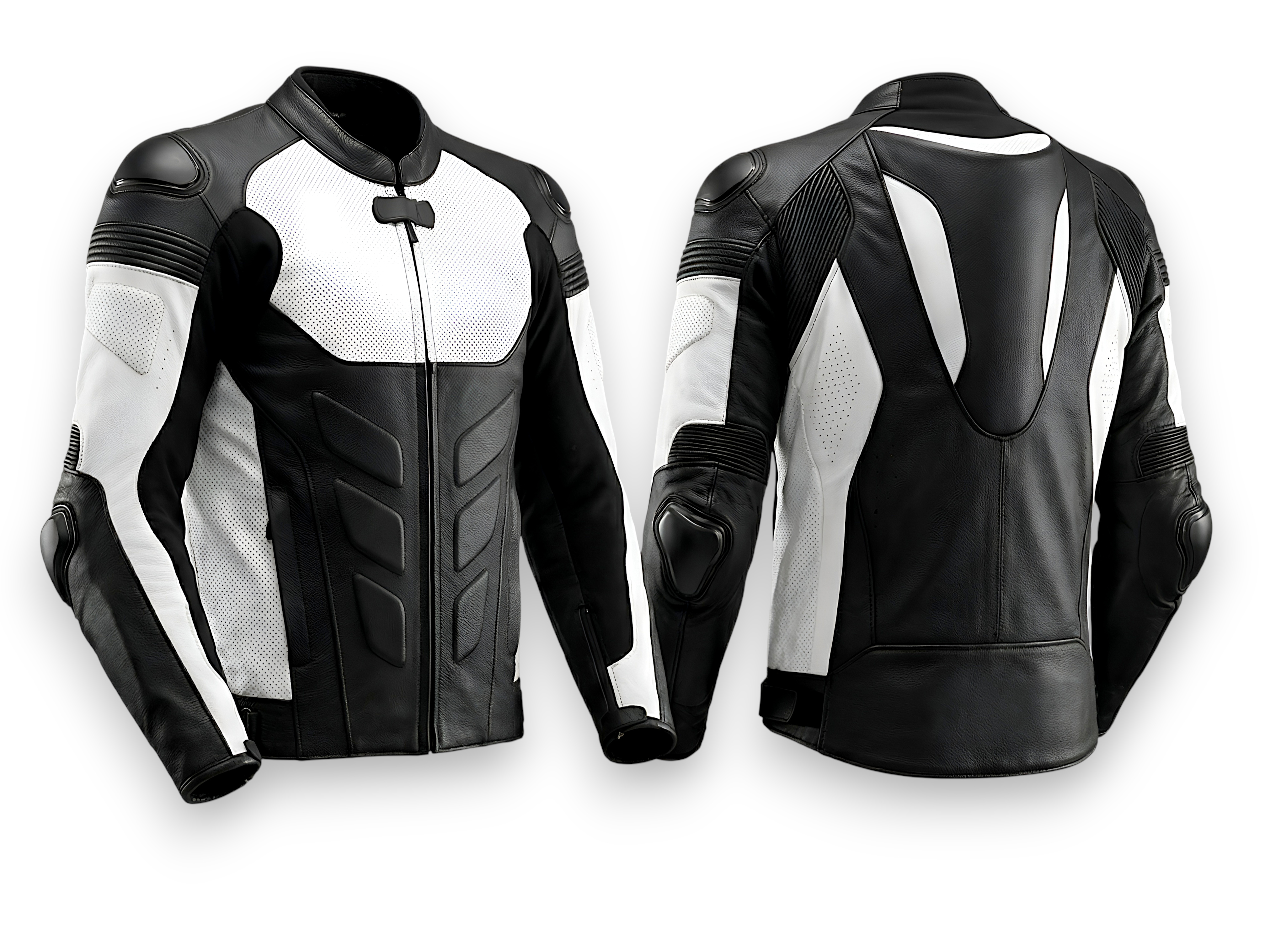 Crafted Leather Designer Racing Black White Leather Biker Motorcycle Jacket