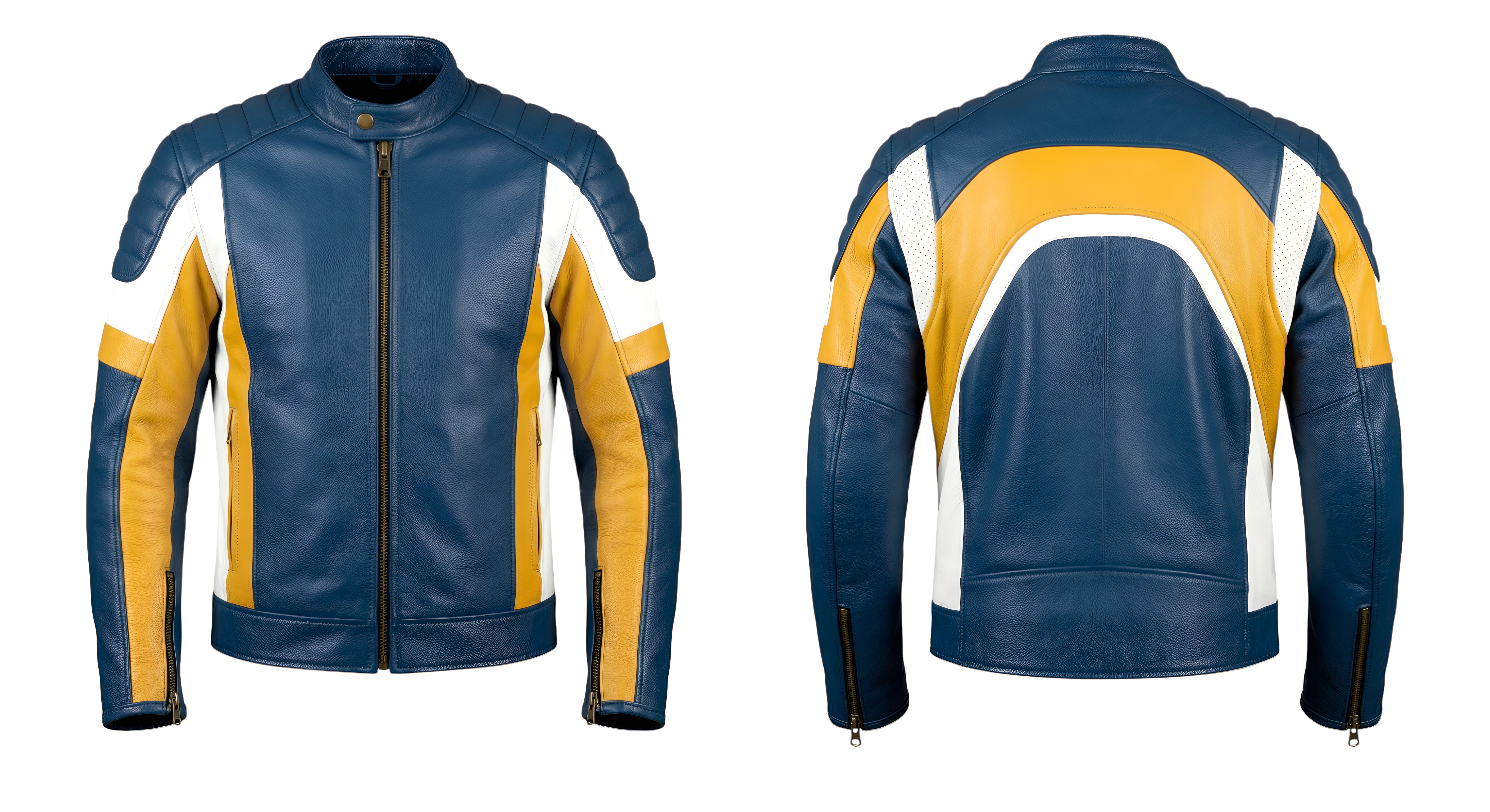 Crafted Leather Design Racing Blue Yellow and White Biker Motorcycle Jacket