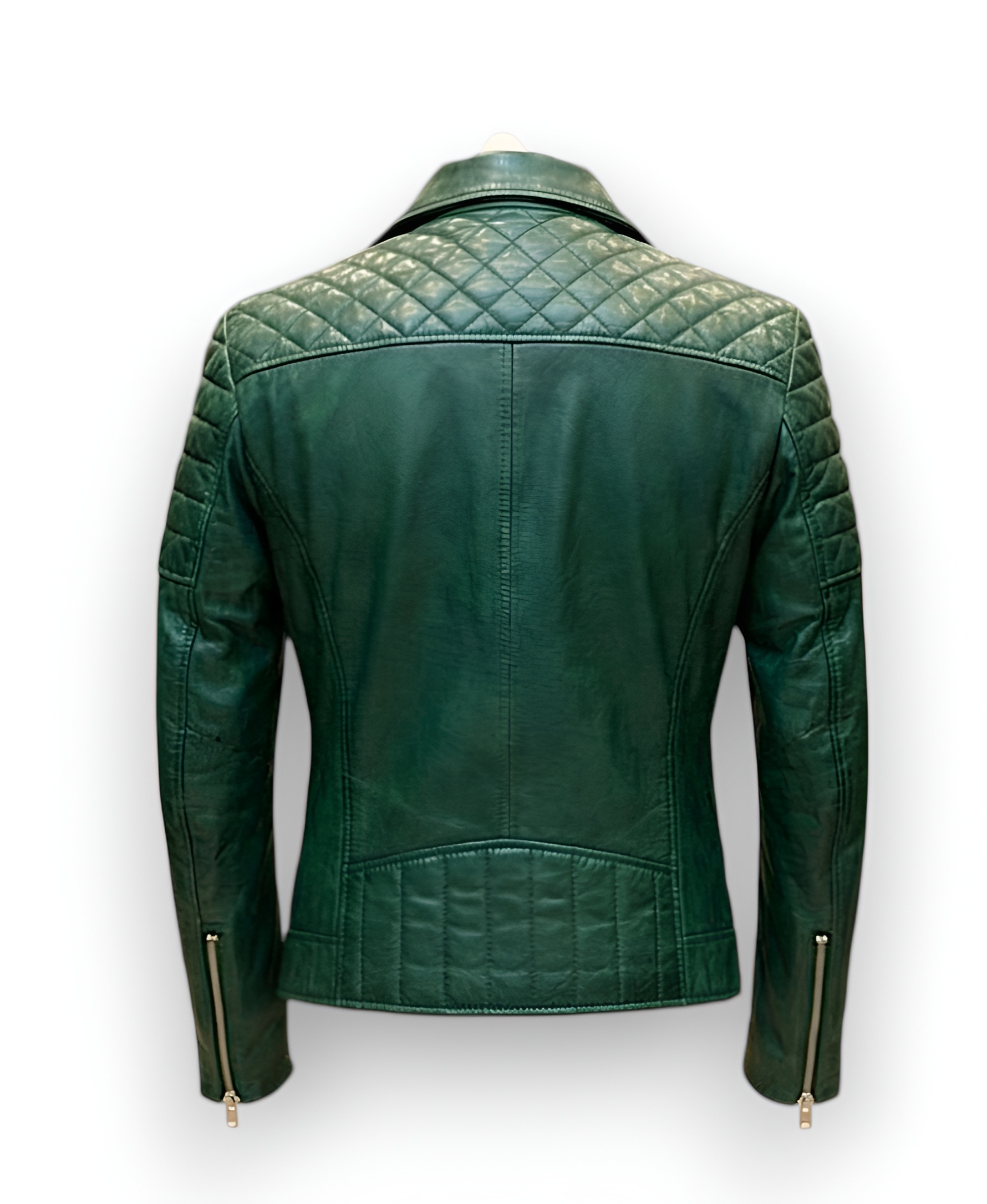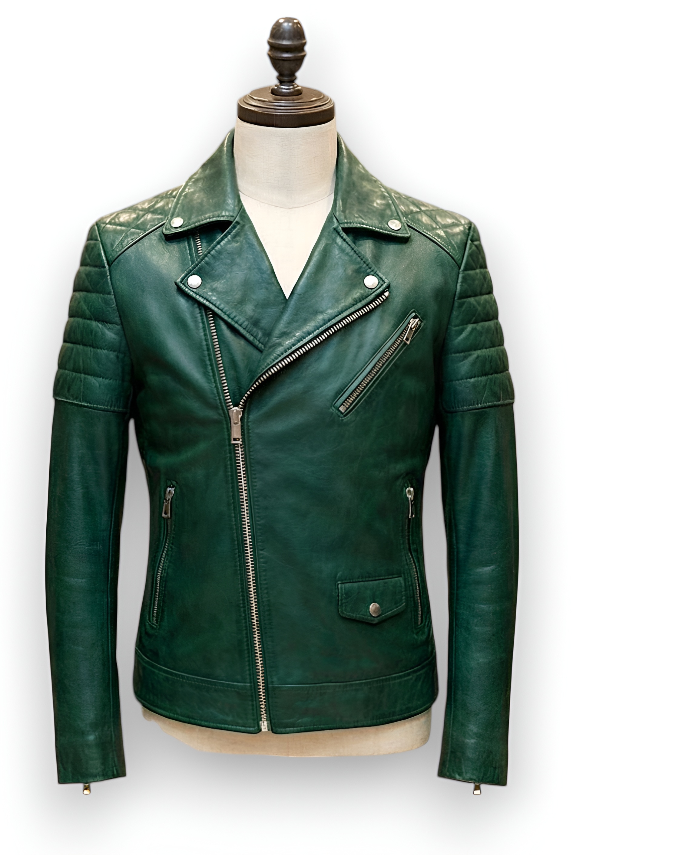 Crafted Leather Design Quilted Green Leather Fashion Jacket Motorcycle