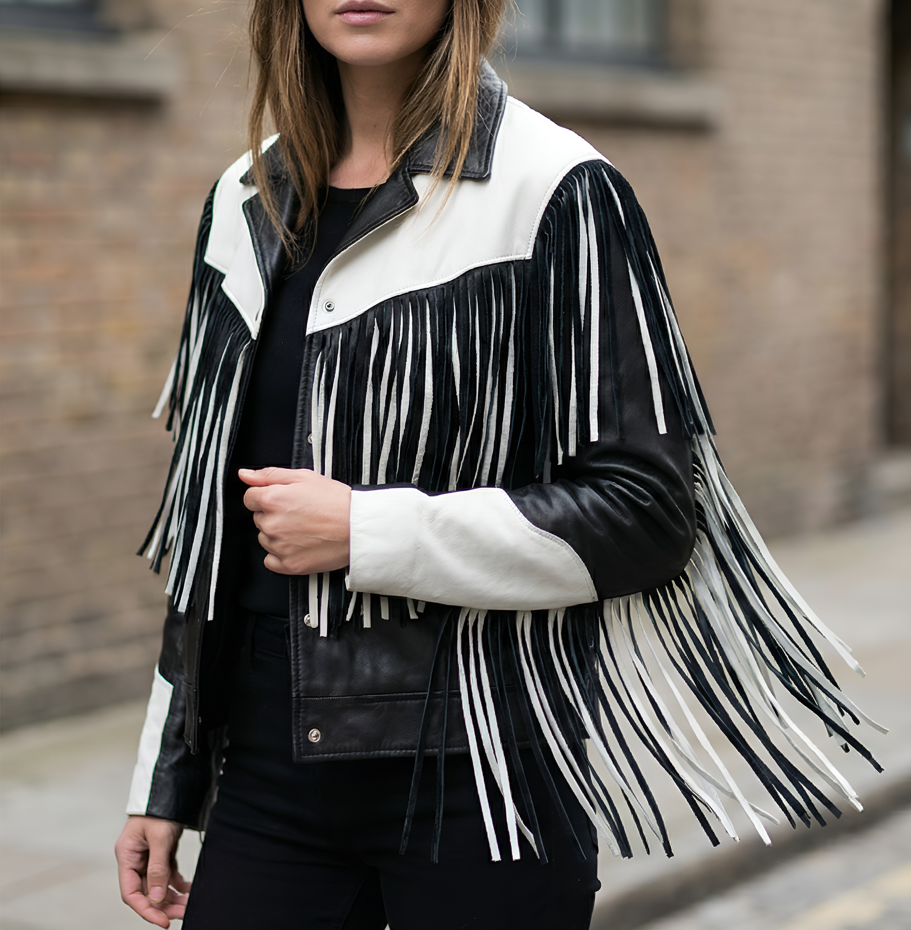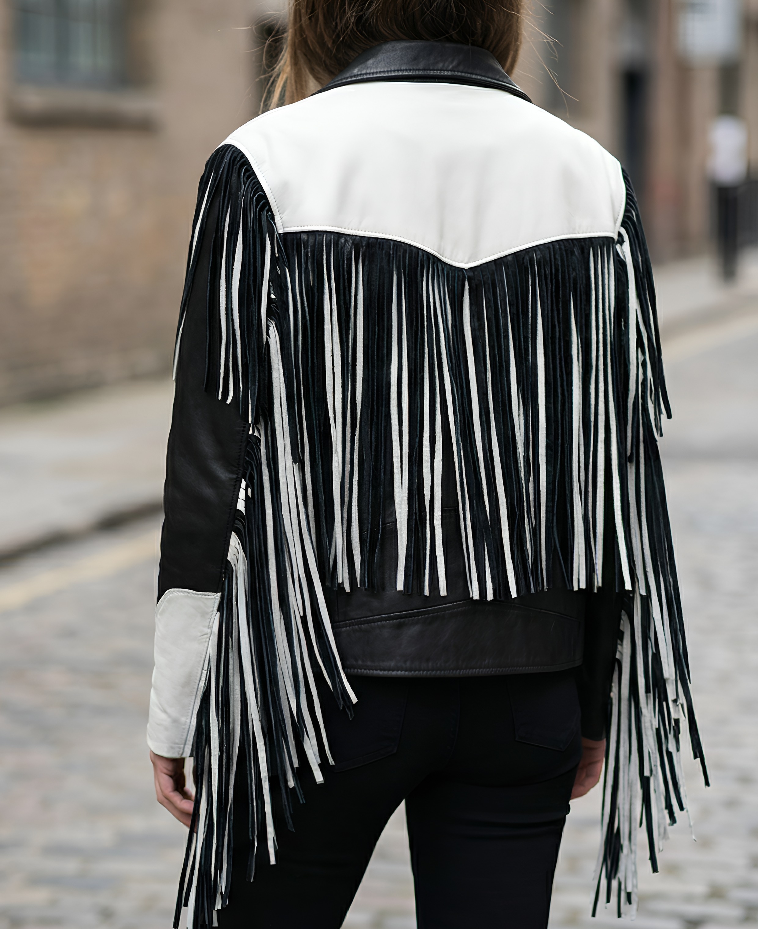 Crafted Leather Classic Designer Women Black White Leather Fashion Jacket Motorcycle