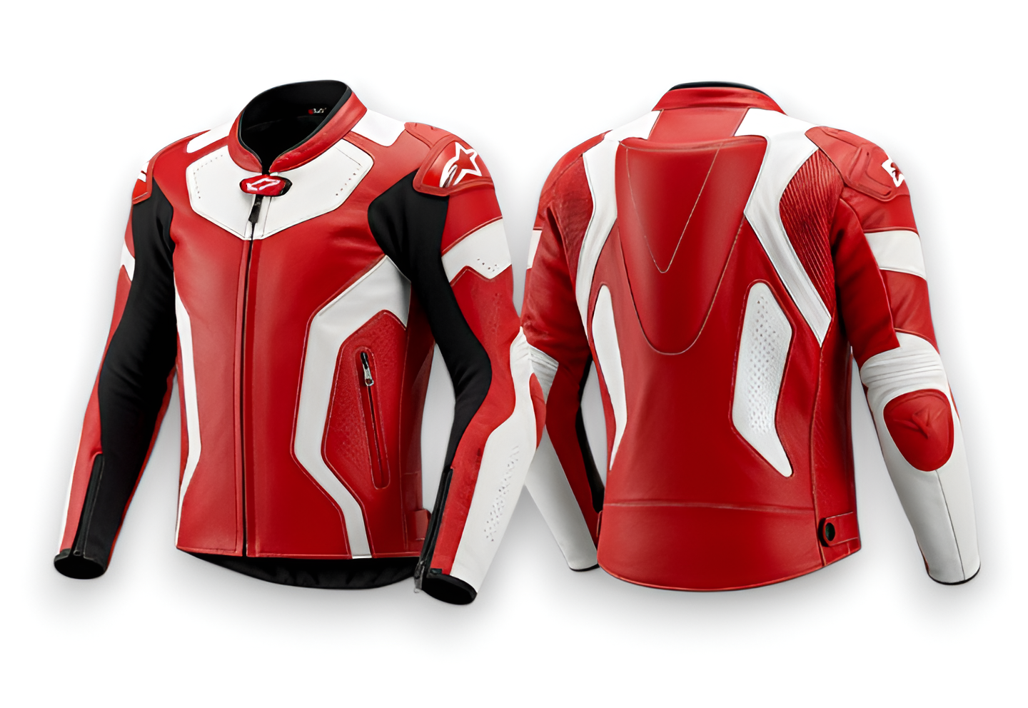 Crafted Leather Classic Designer Red White Black Racing Biker Motorcycle Jacket