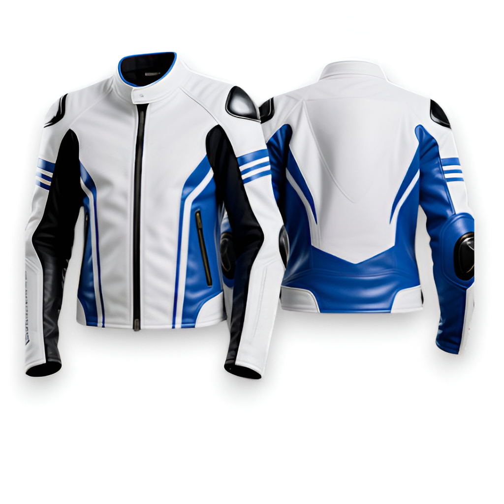 Crafted Leather Design Blue White Leather Biker Fashion Jacket Motorcycle