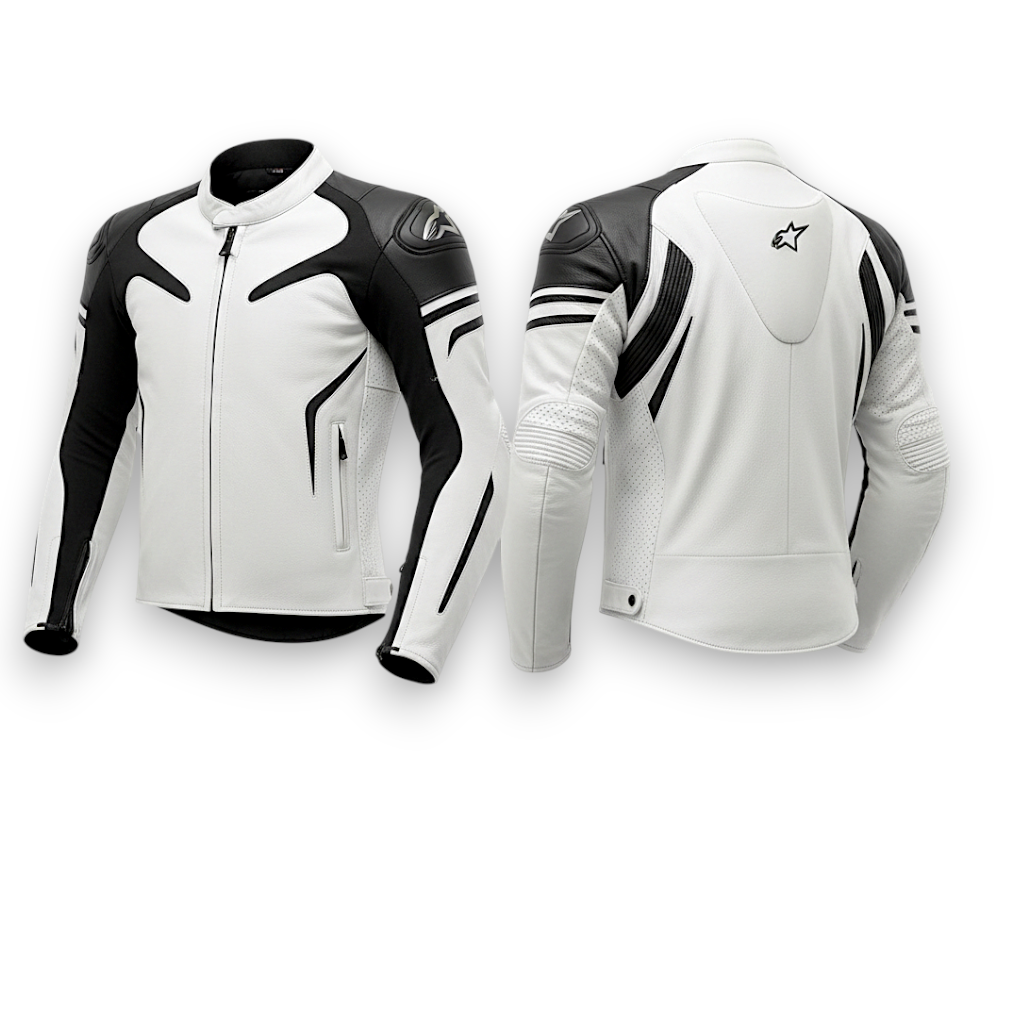 Crafted Leather Design Black White Leather Racing Jacket Motorcycle