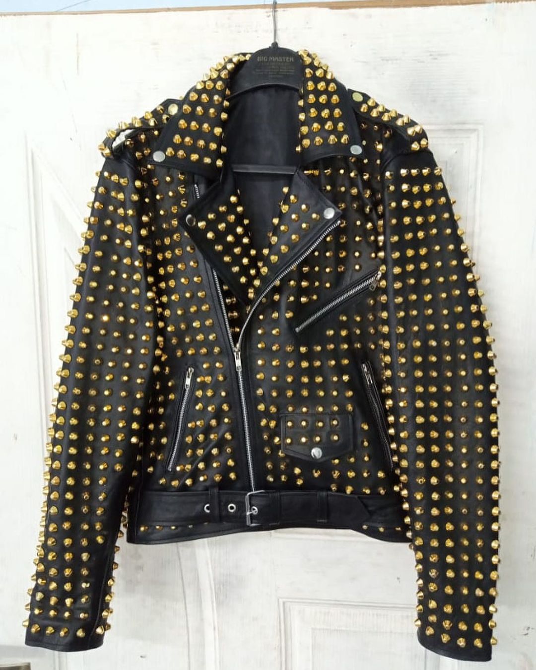 Men's Handmade Black Golden Studded Punk Leather Jacket