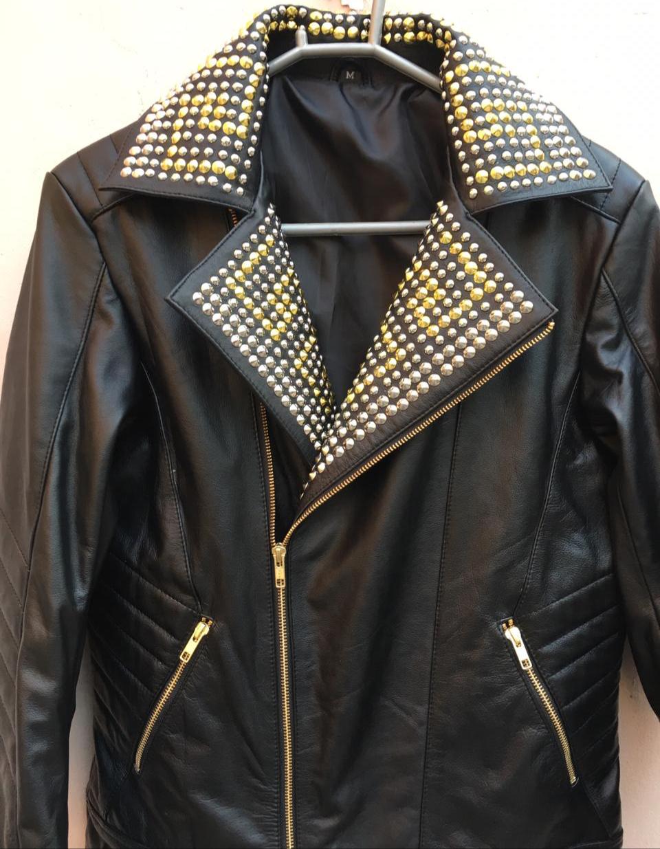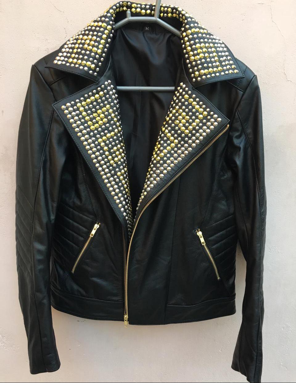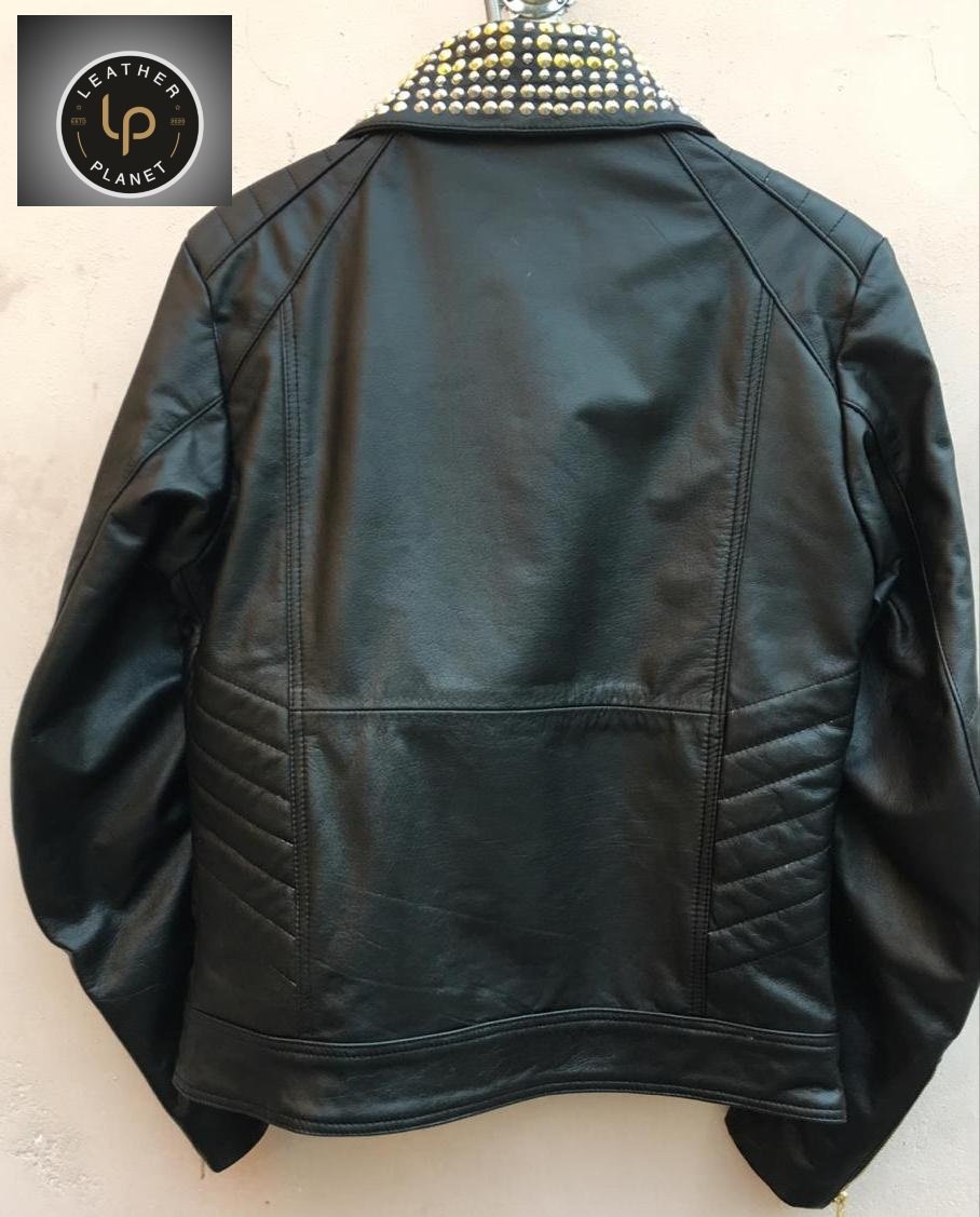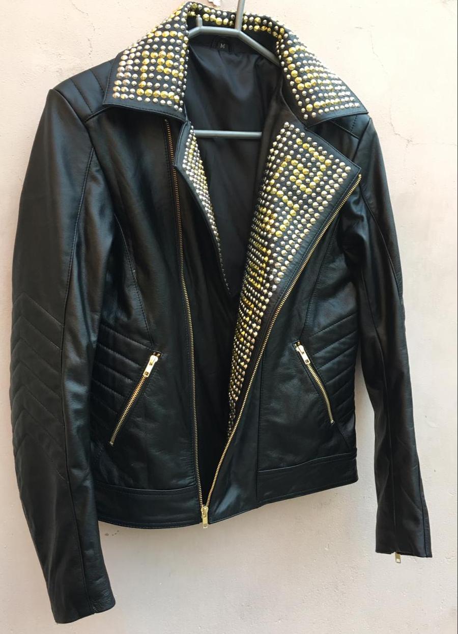 - Real Leather Jacket With Sliver & Gold Studs With Two Side Slashed Pockets.