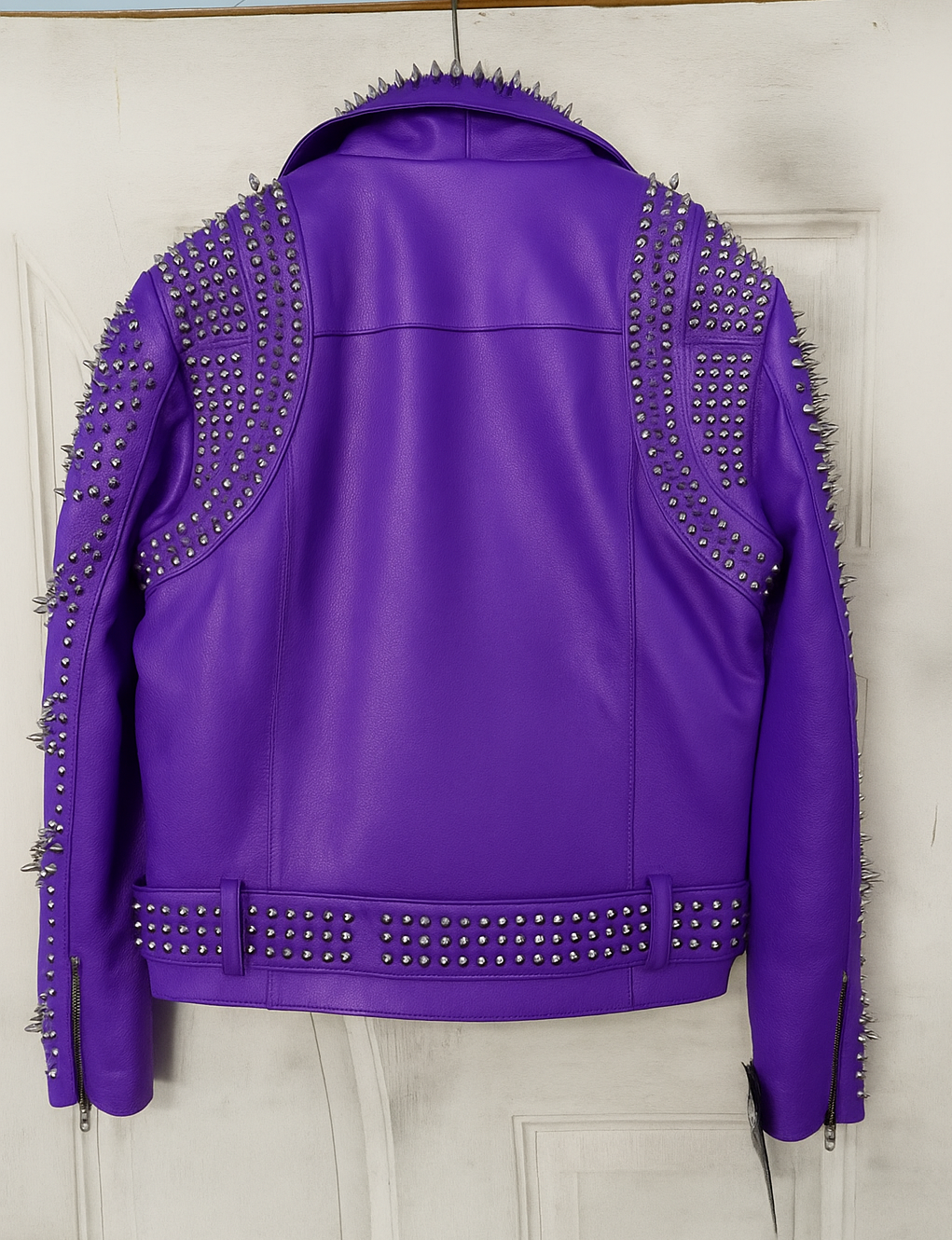 Crafted Leather Women Purple Silver Studded Punk Rock Gothic Jacket