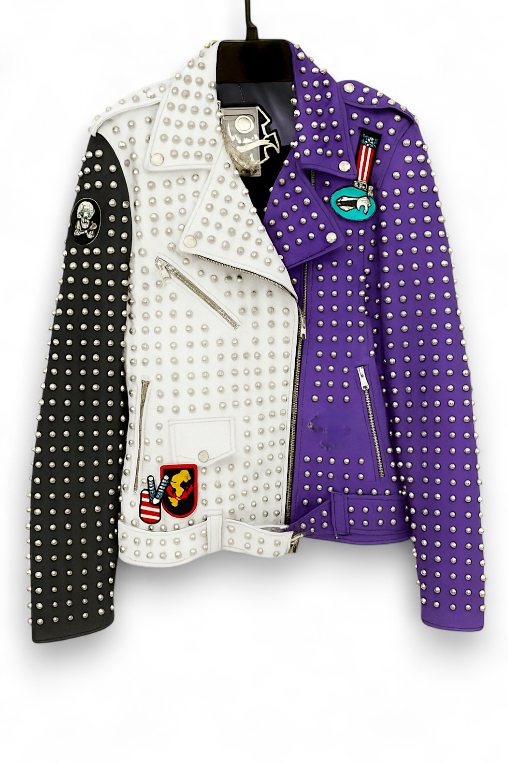 Crafted Leather New Handmade Classic Punk Style Purple/White/Black Studded Adorable Leather Jacket