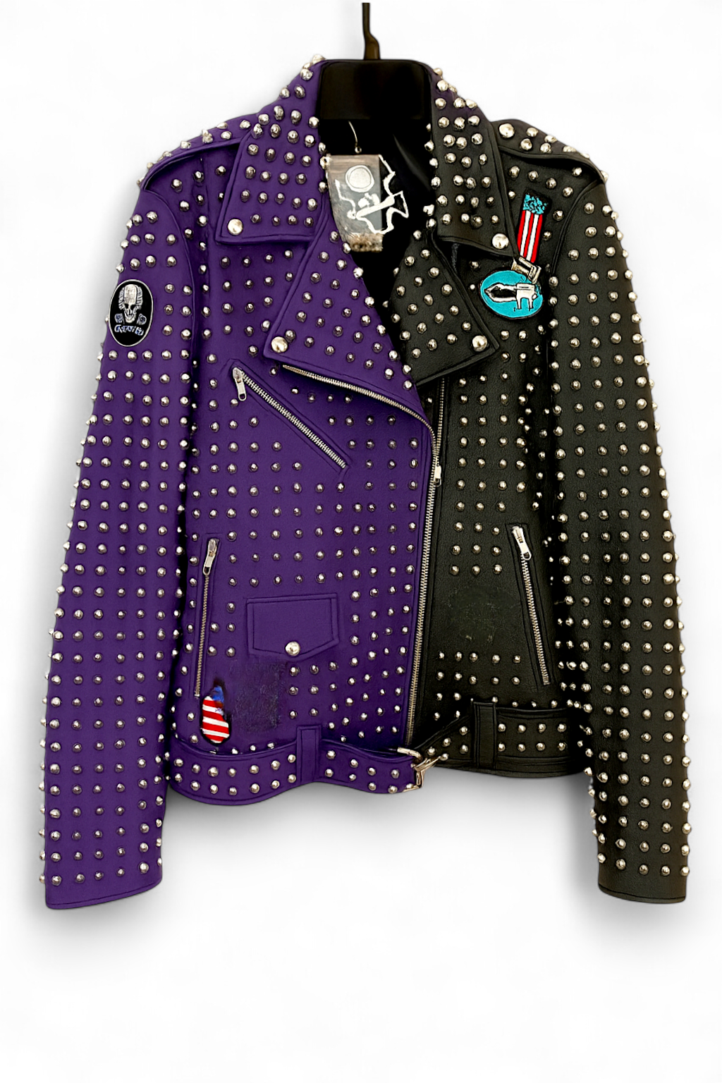 Crafted Leather New Classic Punk Style Purple/Black Studded Leather Jacket