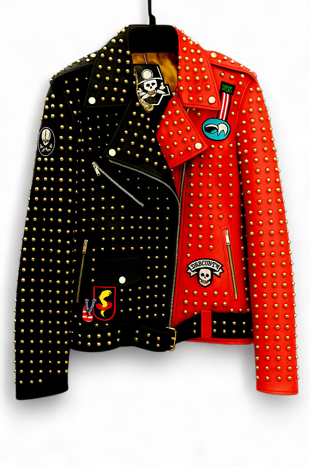Crafted Leather New Classic Punk Style Red/Black Studded Leather Jacket