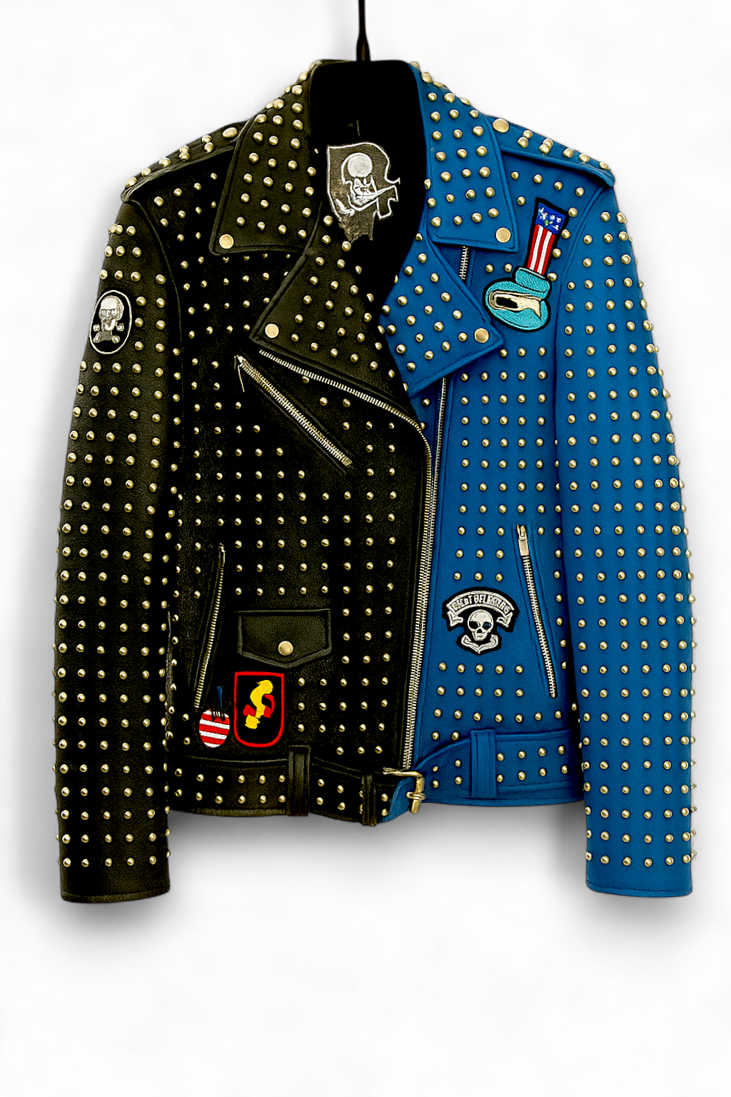 Crafted Leather New Classic Punk Style Blue/Black Studded Leather Jacket