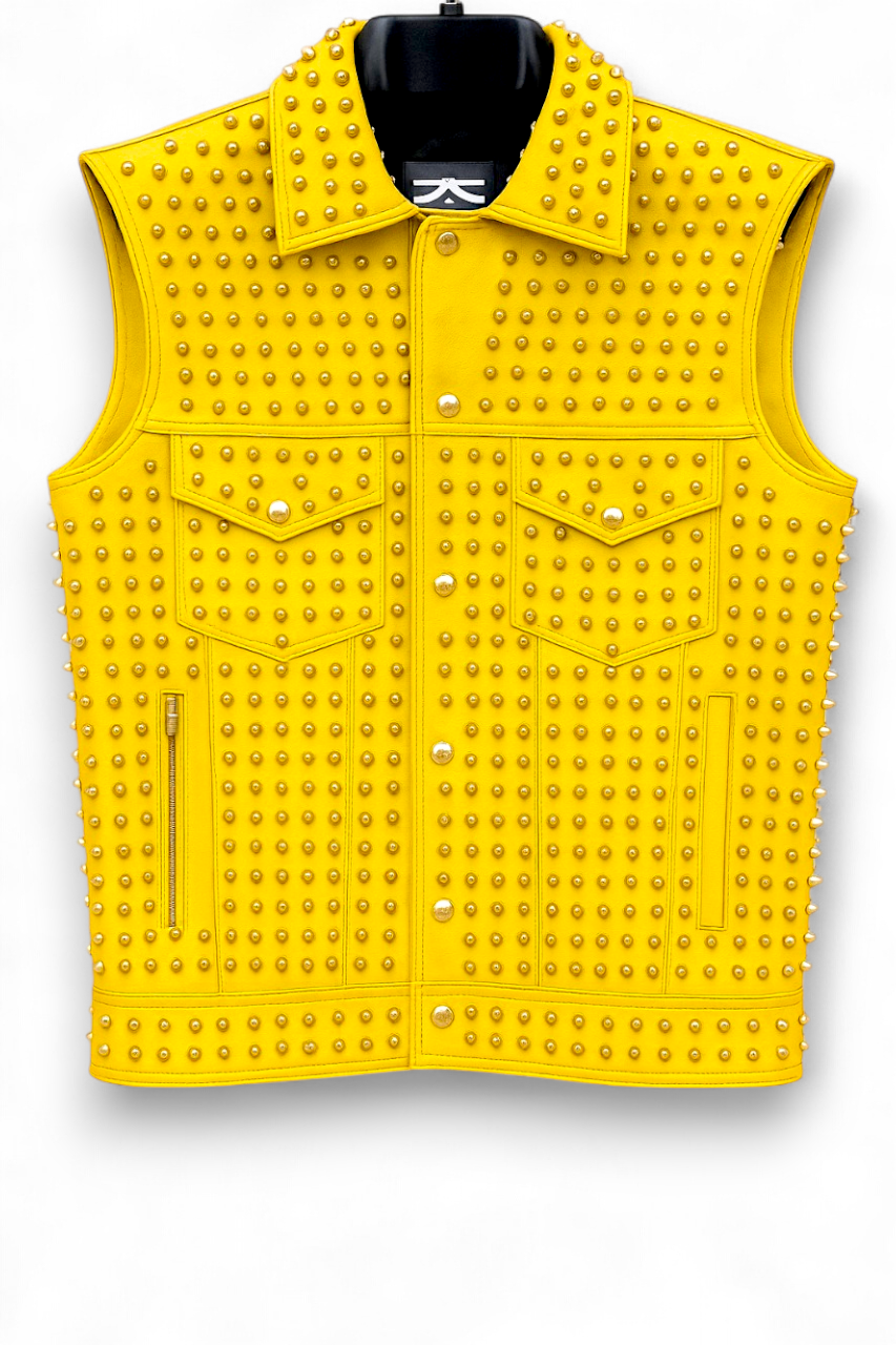 Crafted Leather Men Yellow Studded Jacket Punk Style Stylish Leather Vest