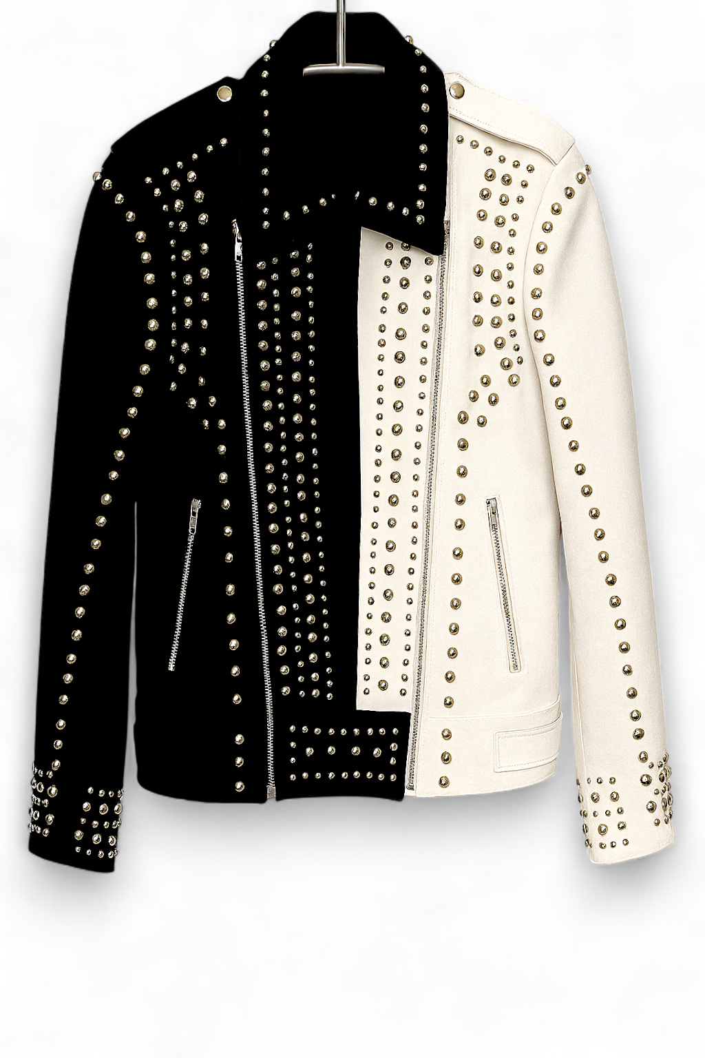 Crafted Leather Handmade Black White Suede Leather Punk Style Studded Jackets For Men