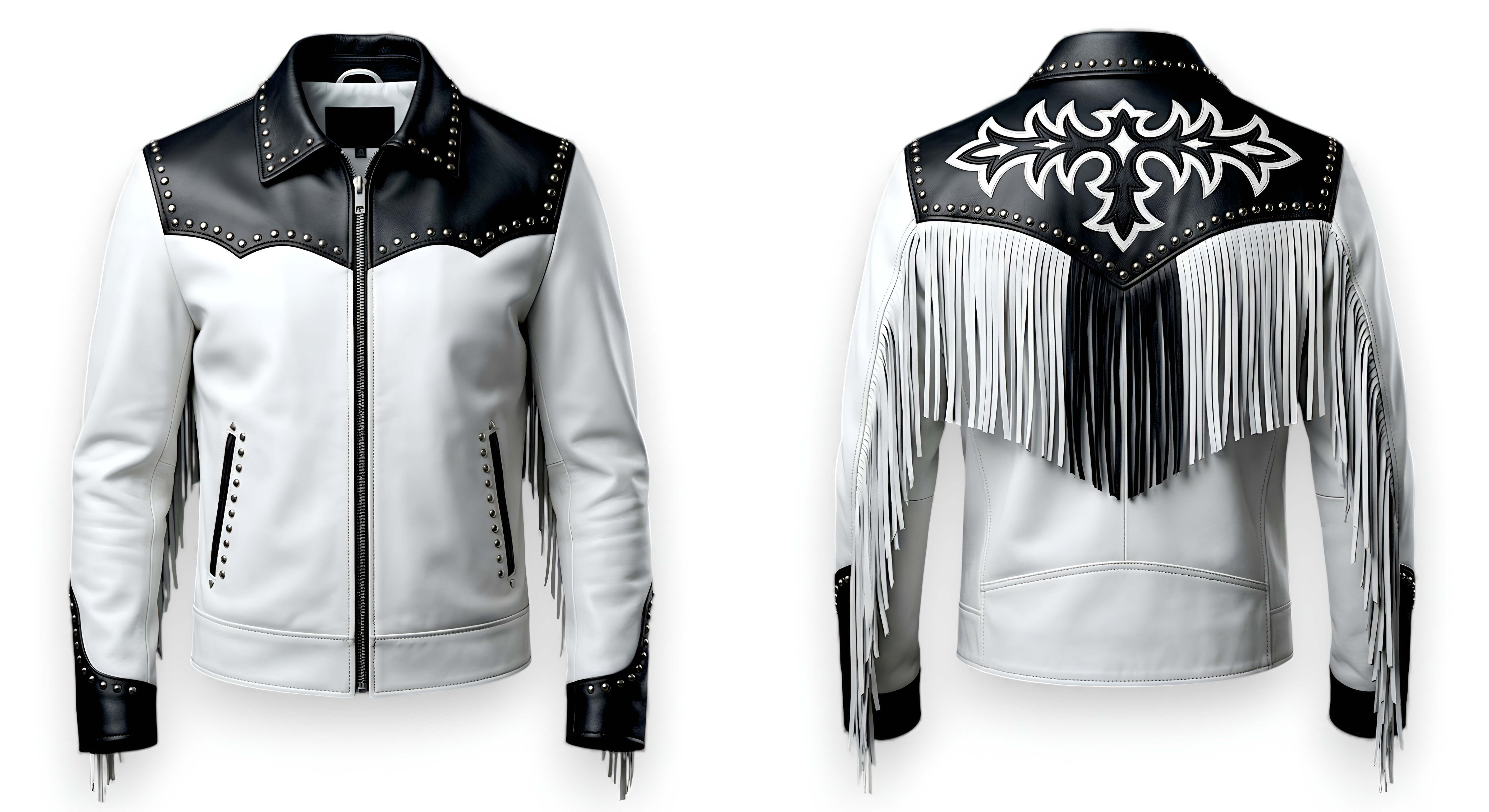 Crafted Leather Design Black White Silver Studded Leather Fashion Jacket Motorcycle