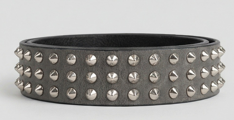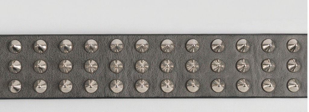 3 Row Silver Cone Stud Belt Gray Leather
