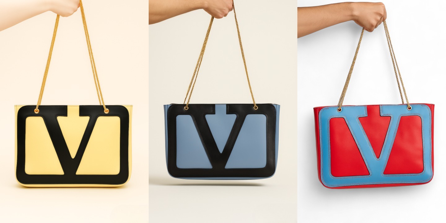 Crafted Leather Classic and Luxury Design Black / Yellow V Logo Shopping Bag For Women