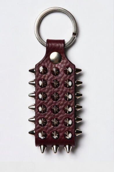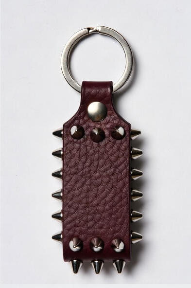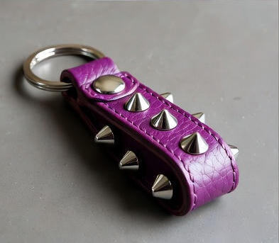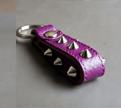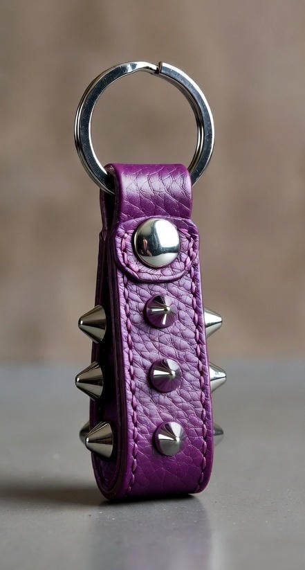 Upper: High Quality Crafted from premium brown and purple genuine leather, this keychain features a bold silver cone stud for a stylish, minimalist look. Durable, hand-finished, and perfect for daily use—keep your keys secure with a touch of modern edge.